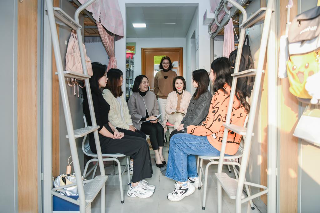 On November 16th, Chen Hong, vice president of Jiangsu University, Fan Yanhua, vice president of the college, Minister Ding Hongmei and counselors of the basic teaching department paid an in-depth visit to our dormitory to understand the students' learning, growth and living conditions.