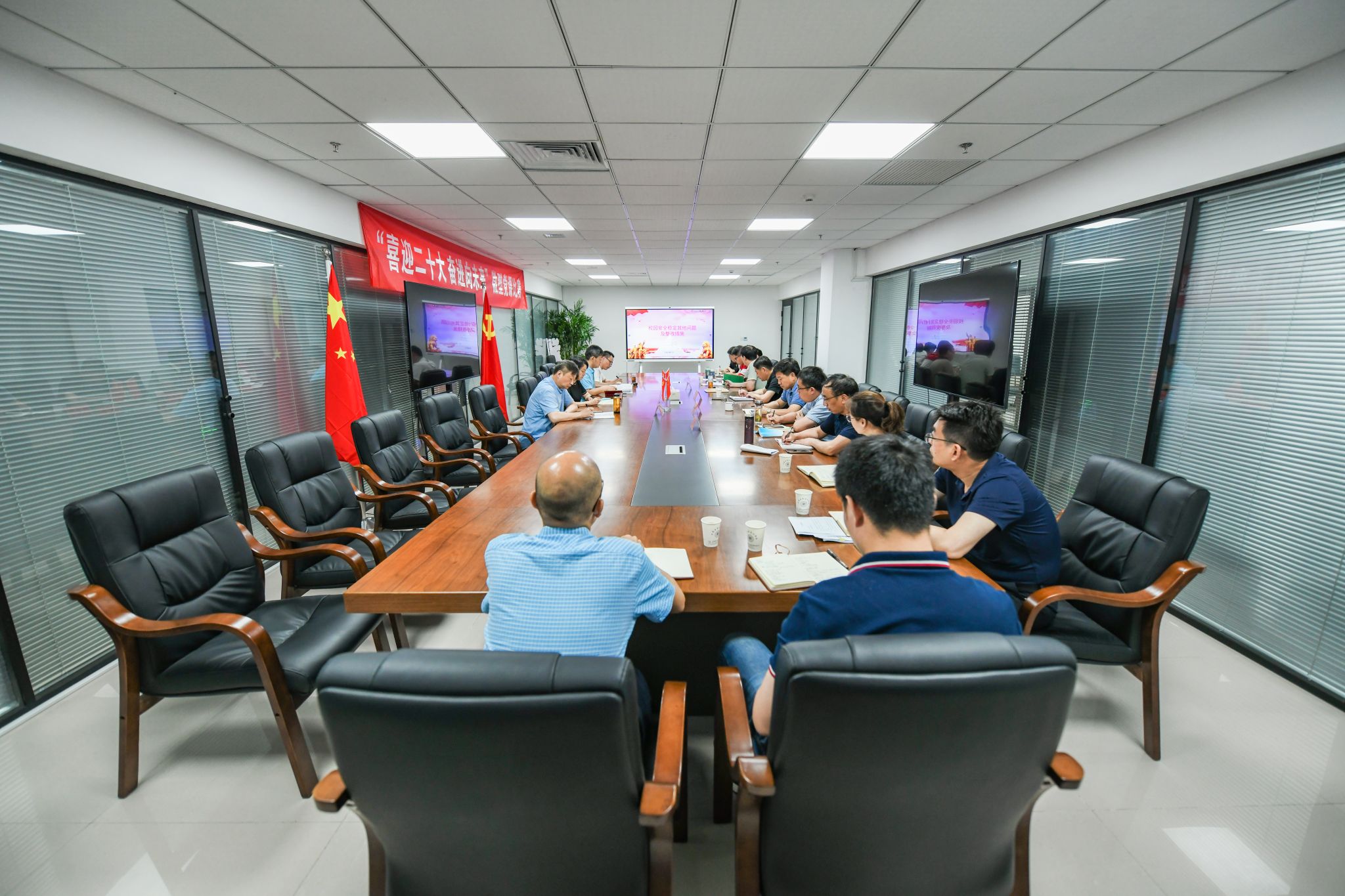Vice President Chen Mingjun reported the specific practices of the college to the inspection team on public security prevention and control. Yin Zhiguo reported to the inspection team on further improving the work safety system and mechanism of the college, the recent work safety priorities, and the rectification of problems found in the process of safety production self-examination.
