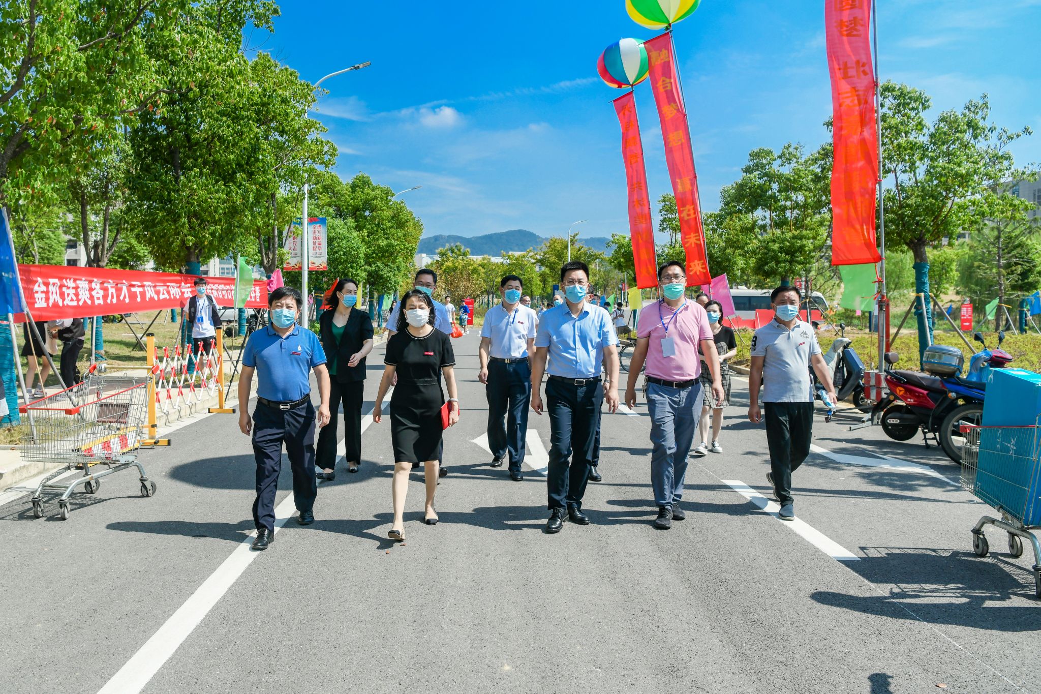 On September 10th, Mao Jian, Secretary of Dantu District Committee of Zhenjiang City, and other stuff came to the college to inspect and guide the epidemic prevention and control work.