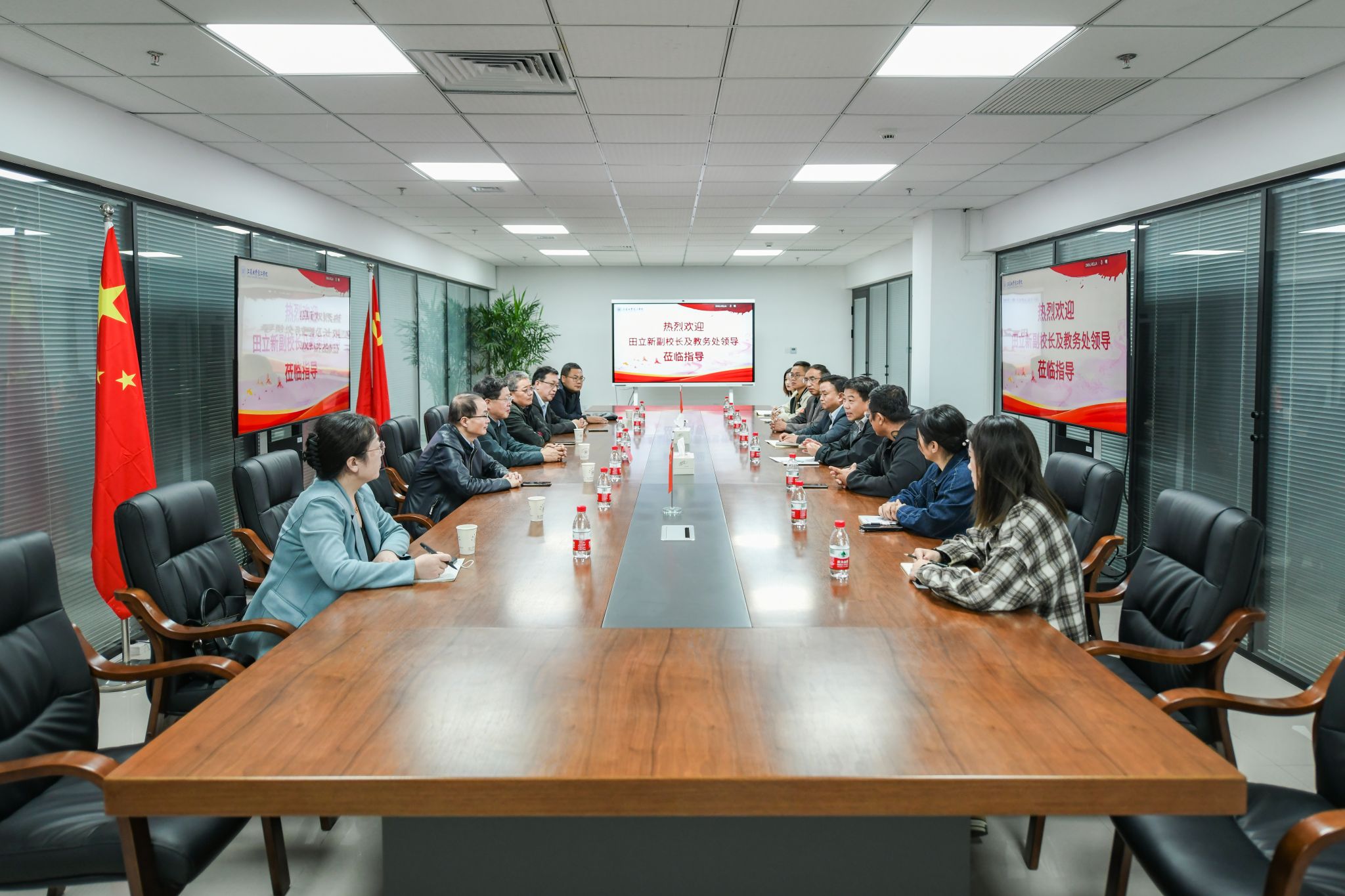 On the afternoon of October 20th, Tian Lixin, vice president of Jiangsu University, and other faculty came to our college for research and guidance. Zhao Xicang, the president of our college, Wang Guolin, the vice president, and the heads of relevant functional departments attended the meeting. The meeting was chaired by Wang Guolin.