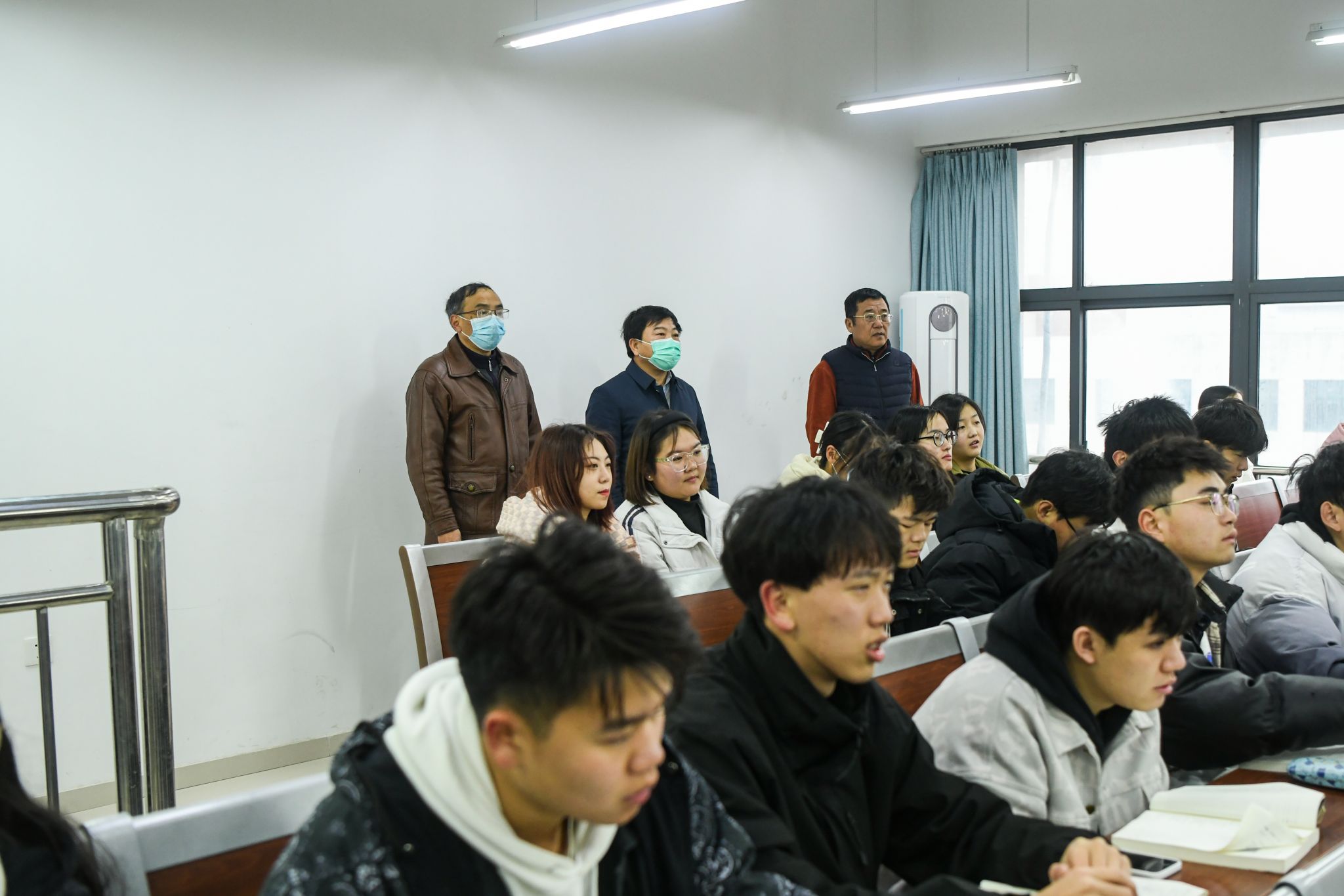 In order to strengthen teaching management and standardize teaching order, on the morning of February 13th, all college leaders of Jingjiang College, Jiangsu University, as well as heads of secondary colleges (departments) and relevant functional departments, formed a teaching inspection team. They went into the classes to inspect the arrival of teachers and students, teaching situation, and teaching security on the first day of school.