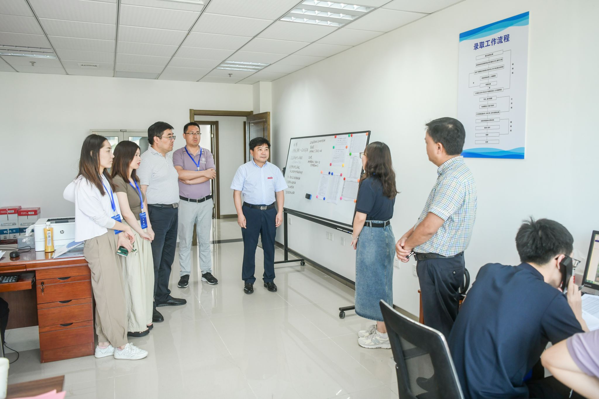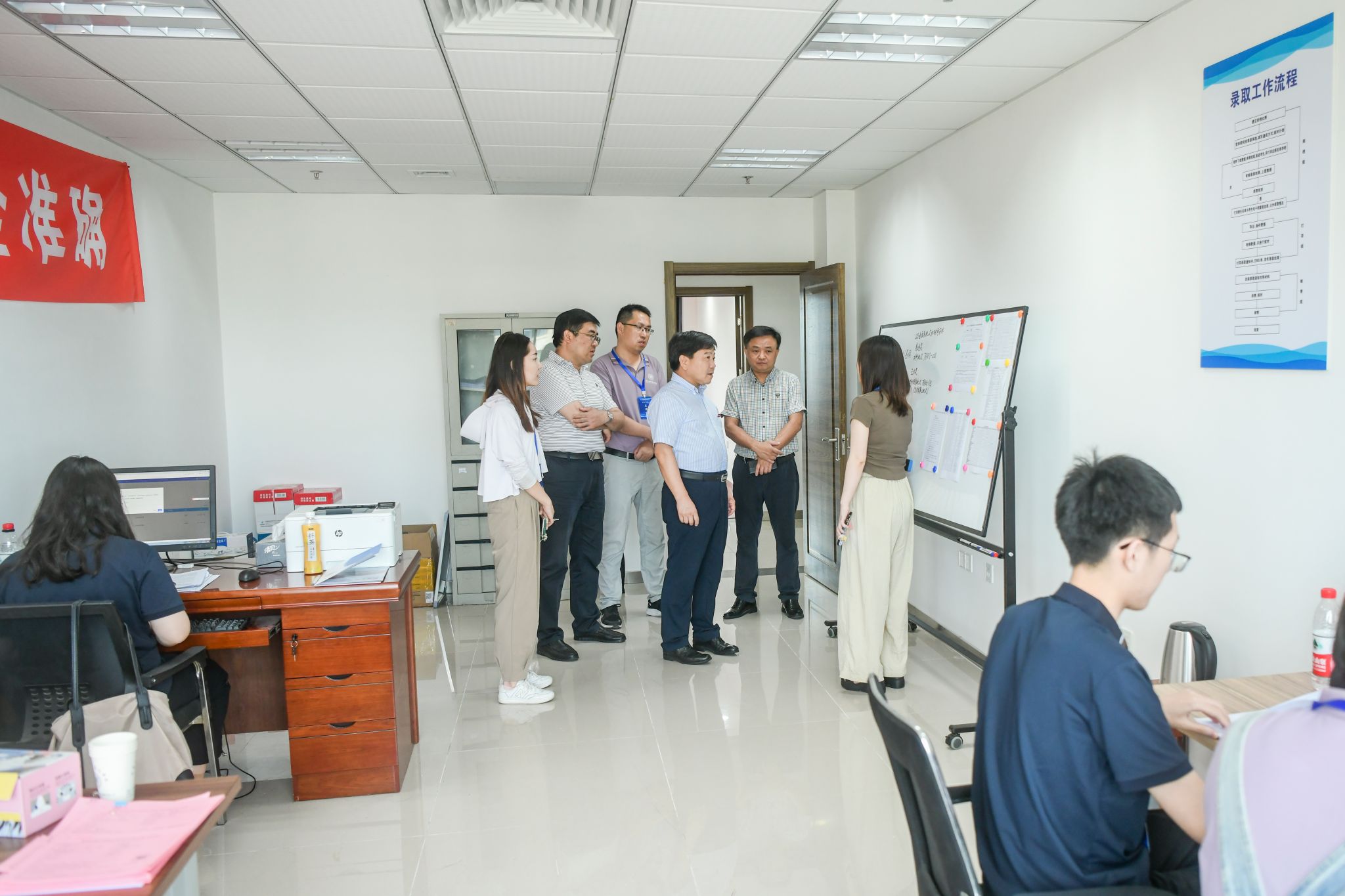 Zhao Xicang and his team arrived at the enrollment site and inspected the visitor consultation room, telephone consultation room, and admission office respectively. They also warmly expressed condolences to the enrollment staff and student assistants.