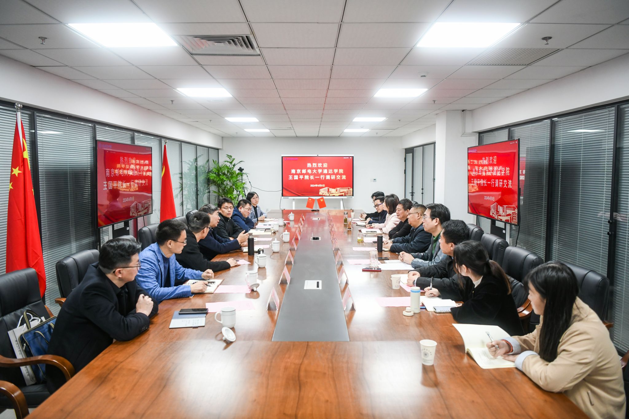 On the morning of April 8, Wang Guoping, Dean of Tongda College of Nanjing University of Posts and Telecommunications, and his delegation came to our institute for research and exchange. Cui Jingui, Du Daolin, Fan Yanhua, Jiang Hao and other leaders of our college and heads of relevant functional departments attended the exchange meeting. The meeting was presided over by Cui Jingui, Secretary of the Party Committee.