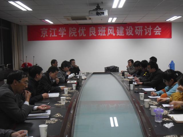 Jingjiang College successfully held an academic atmosphere seminar on Nov. 2nd, 2010. This seminar was held to strengthen ideological Education and build up a learning atmosphere among class in Jingjiang College. Ms. Zhao Meiqing, the deputy Party Secretary and vice president of Jingjiang College, and faculties from Student Affairs Office attended the meeting.