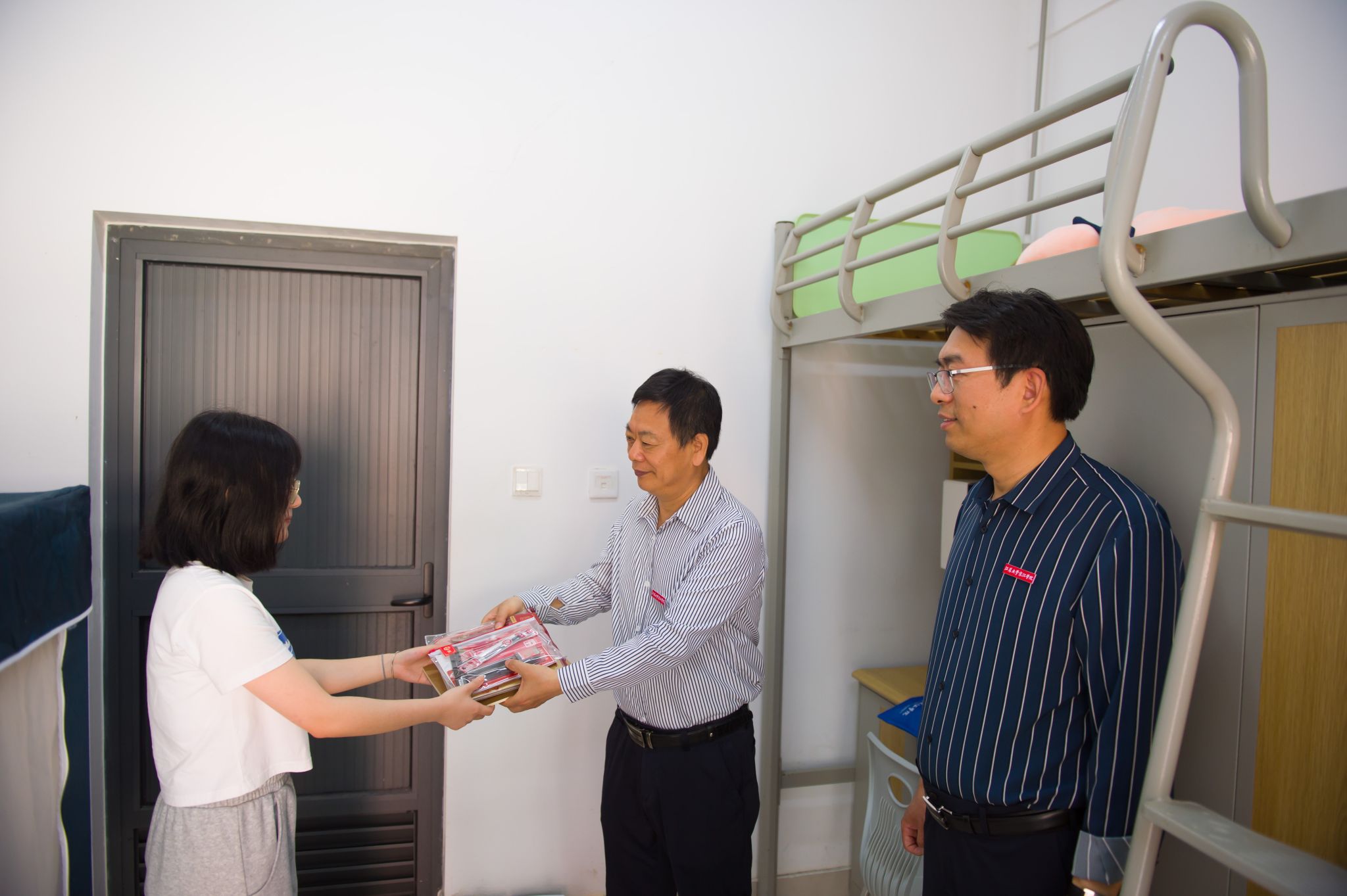 On May 19th, it is the 34th National Disability Assistance Day. In response to the call for the development of the national cause for people with disabilities, recently, Jingjiang College of Jiangsu University has actively carried out a series of condolence activities. Cui Jingui, Party secretary, and Jiang Hao, deputy Party secretary and discipline inspection secretary, presented school supplies and condolence money to disabled students of the college, allowing them to feel the warmth and care from the college.