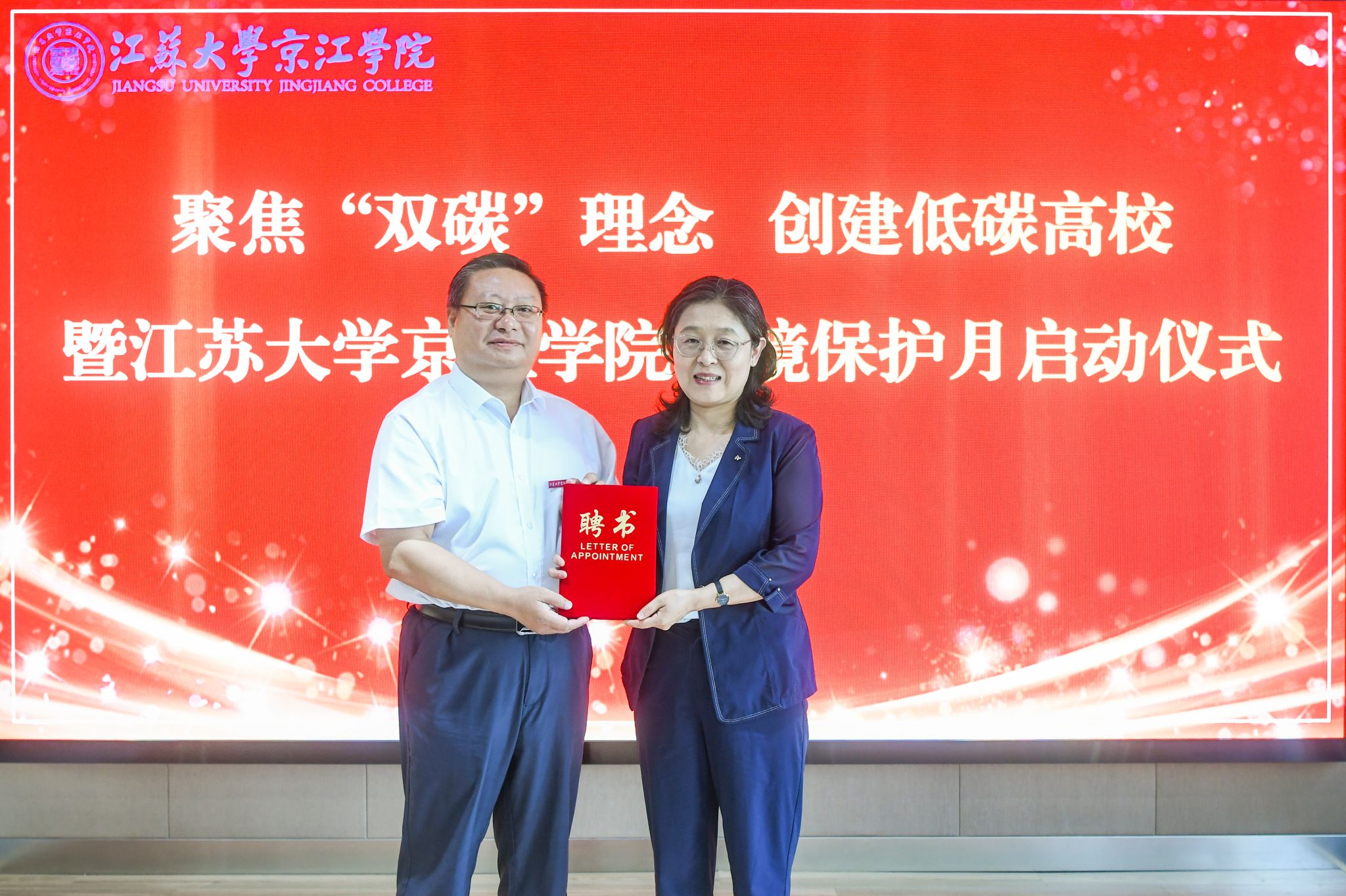 Subsequently, Du Daolin issued a letter of appointment as a guest professor to Chen Changzhi, deputy director of Zhenjiang Ecological Environment Bureau. All the people watched the micro-lecture video on environmental protection of "Green, Low-carbon, Beautiful China" together, paid attention to the impact of climate change, joined hands to form a simple, moderate, civilized and healthy lifestyle and consumption pattern, and jointly promoted green and low-carbon development.