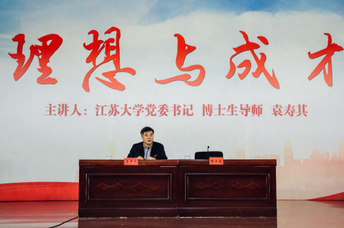 On the afternoon of October 10th, our college held the first lecture of “Jingjiang Lecture Hall” on the new campus. Professor Yuan Shouqi, secretary of the Party Committee of Jiangsu University and doctoral tutor, was invited to give a special lecture entitled “Ideal and Talent” for 2018 freshmen. Chen Zhigang, Party Secretary of the College, Zong Bojun, Vice President, Wu Liping, Deputy Secretary of the Party Committee, Vice President, relevant department heads, all 2018 freshmen counselors and 810 freshmen representatives participated in the event. The event was hosted by Lu Zhengnan, Dean of our college.
