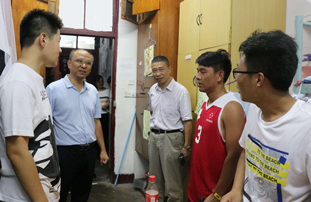9月10日下午,我院院长路正南、副院长陈卫平、党委副书记吴立平,党委书记陈志刚、副院长宗伯君、副院长孙国分别赶赴京江学院中山校区和梦溪校区,深切慰问迎新工作人员,并走访新生宿舍,详细了解迎新工作的进展情况和新生报到情况。工作人员对学院领导的慰问深表感谢,投身于优质服务的热情不断高涨。在走访新生宿舍期间,院领导与新生家长亲切交谈,并表示学院会尽最大努力为学生提供优质的生活条件和学习环境,让每一位学生都能在京江健康快乐地成长,收获精彩美丽的人生。