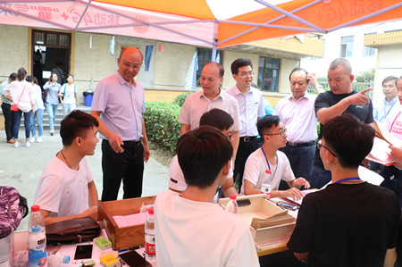 在新生接待处、“绿色通道”咨询处、食堂、学生公寓等地,颜校长听取了有关人员的汇报,详细询问了迎新工作的进展情况,与新生、家长、工作人员和志愿者进行了亲切交谈,嘱咐全体工作人员热情周到地做好迎新各项工作。
