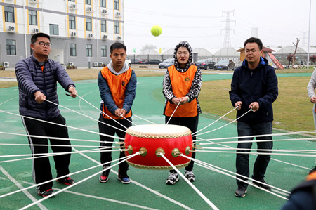 开场热身后,全体新教师分为两个小组,确定各自队名为“树人队”和“启航队”,竞争与合作在两队之间展开。“速记姓名”、“花海取字”项目消除了新教师之间的陌生感;“挑战信任背摔”、“挑战5分钟”、“雷区取水”项目增加了团队之间的默契;“齐眉棍”、“七巧板”、“急速60秒”项目考验了新教师们完成项目的能力,也锻造了他们的凝聚力。