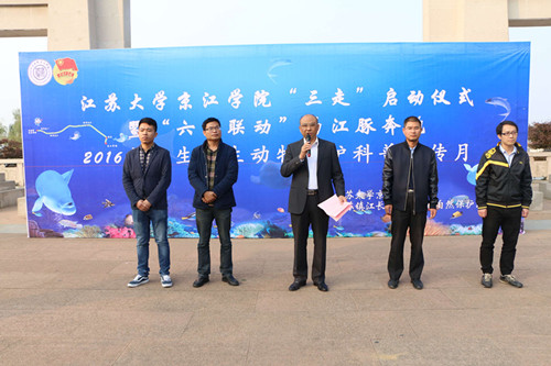 陈志刚书记为本次活动致辞,他指出,近年来长江流域水体污染加剧,江豚的生存岌岌可危,保护江豚行动刻不容缓,京江学子应以身作则,与周围人一起,保护珍贵的江中精灵。