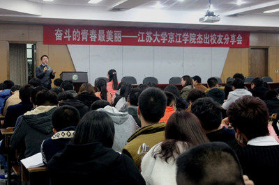 11月18日晚7:00,能容纳500人的学院报告厅座无虚席,奋斗的青春最美丽——江苏大学京江学院杰出校友经验分享会在此举办。本次活动特邀我院首届毕业生、中国工商银行江苏分行团委书记王泽华主讲,活动由院团委书记高伏康主持。