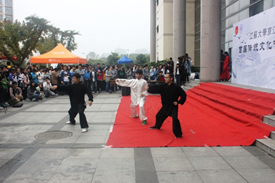 夏民副书记在致辞中强调,中华优秀传统文化有着自强不息、厚德载物的优良传统,当代大学生是华夏儿女,炎黄子孙,有责任有义务传承和发扬五千年的民族文化。他对在场大学生表达了“俱往矣,数风流人物,还看今朝”的愿景和期望,张文娟副书记宣布文化节正式开始。江苏大学京江学院养正学社献上歌舞表演,以汉服的古色、歌曲的古典、书法的古韵、太极的古朴等让参与者从各个方面了解中华优秀传统文化,而跳绳、传统文化知识竞答等游戏则将活动推到了高潮。同学们积极参与,在游戏中体会到中华文化的博大精深。最后活动在竹蜻蜓的放飞中完美落幕。