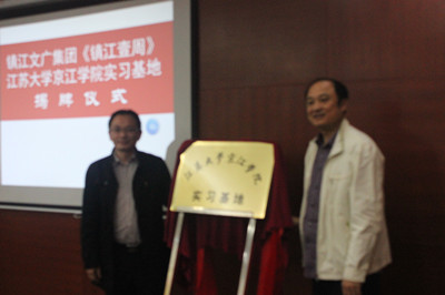4月14日上午,江苏大学京江学院实习基地挂牌仪式在镇江文广集团举行。镇江文广集团镇江壹周总编辑安少林、副总编葛文斌,江苏大学京江学院副书记、副院长王善民、营销系主任宋丁伟、实践教学科科长王玉辉出席仪式。安少林总编、王善民副书记共同为实习基地揭牌。
