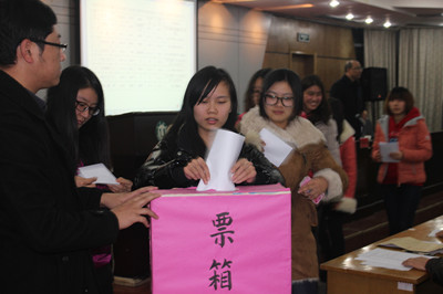 此次代表选举大会严格按照校党委要求的议程有序进行。首先,会议审议通过10名党员不计入到会人数议案,并审议通过《中国共产党江苏大学京江学院党员大会选举出席校第三次党代会代表选举办法(草案)》。随后,会议通过了监票人名单并宣布计票人名单。院长路正南同志宣读了8名候选人名单并简要介绍了候选人情况。最后,与会正式党员在工作人员的引导下到票箱前有序投票。经过紧张细致的计票工作,最终路正南、陈志刚、赵跃生、王善民、孙国、蒋亚运(学生)等6人当选为我院出席校第三次党代会的正式代表,并提请校党委审查批复。院党委书记陈志刚同志还代表院党委就我院群众路线教育实践活动中专题民主生活会情况向全体党员同志作了情况通报。