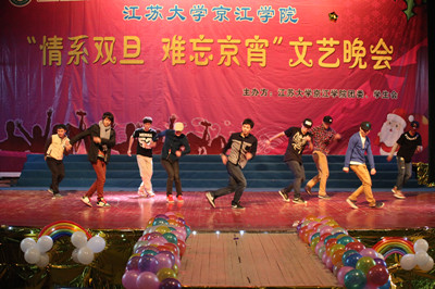 为了欢庆圣诞与元旦的来临,营造新年前欢乐的氛围,丰富同学们的校园文化生活,2013年12月6日,江苏大学京江学院 “情系双旦,难忘京宵”大型文艺晚会在校大礼堂热力上演。校关工委陆一心教授、仇锦波教授、郎黔山教授,校学工处吴立平副处长,校团委冯琳副书记,院党委王善民副书记等领导观看了本场晚会。