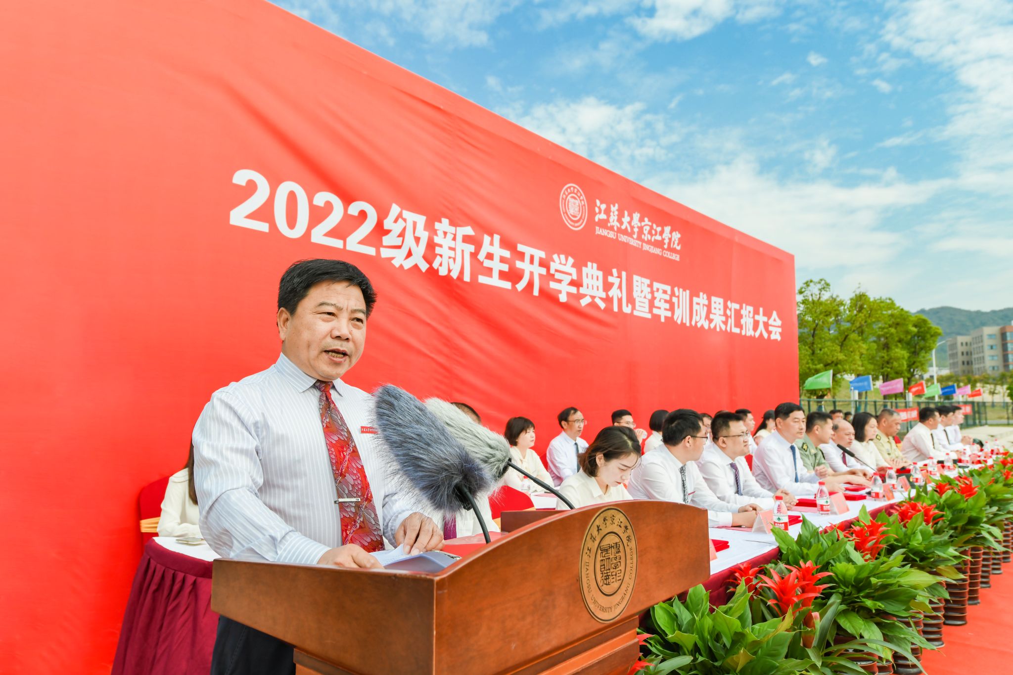 江苏大学校长、江苏大学京江学院理事长颜晓红,江苏大学副校长陈红,江苏大学校长办公室副主任薛鹏,我院全体院领导、各二级单位负责人、新生辅导员、全体2022级新生参加了开学典礼。典礼由学院党委书记尹志国主持。