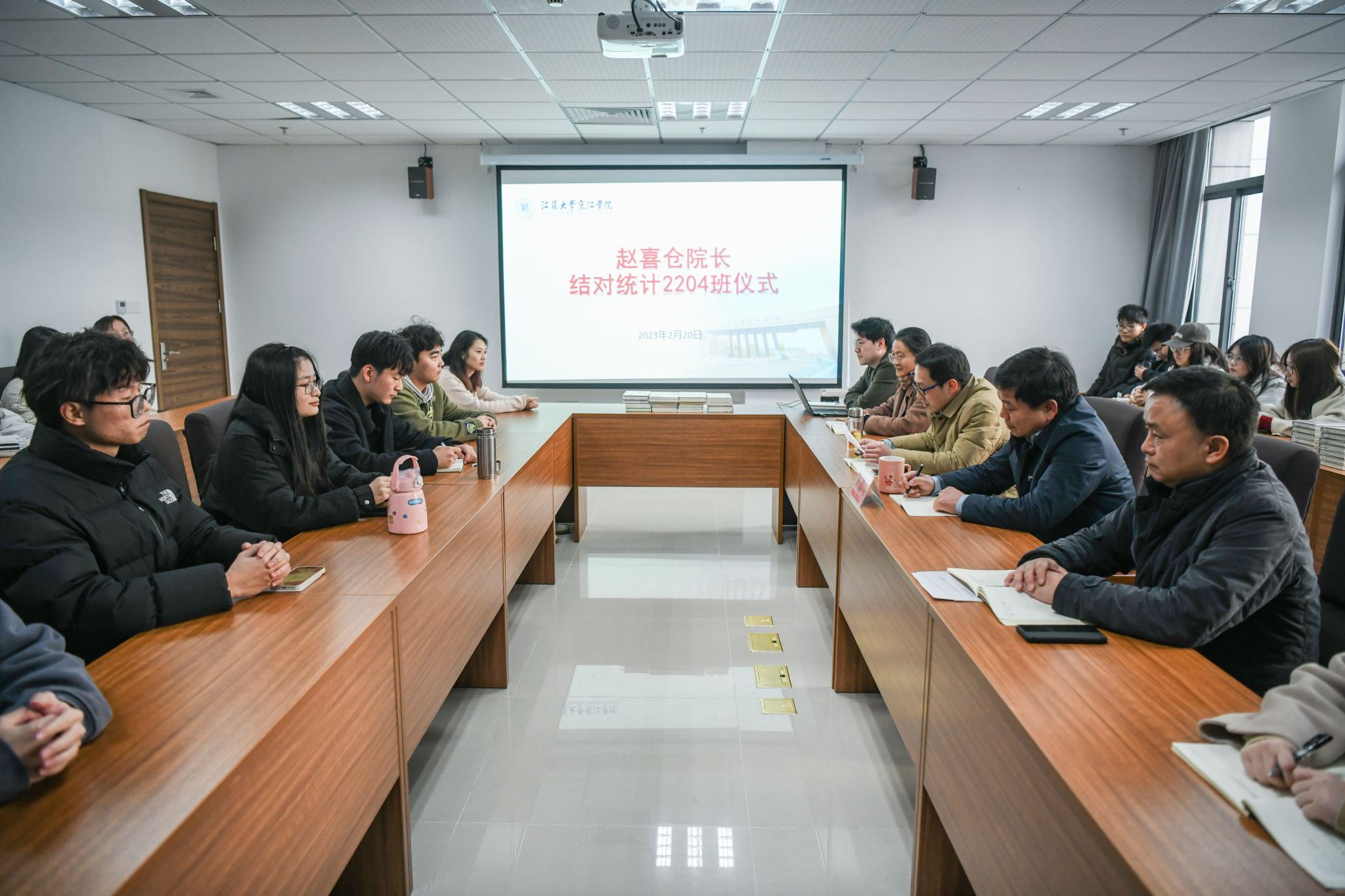 2月20日下午,院长赵喜仓与财经学院统计专业2204班结对仪式在行政楼106举行。综合办公室、财经学院负责人出席仪式,仪式由财经学院党总支书记高伏康主持。