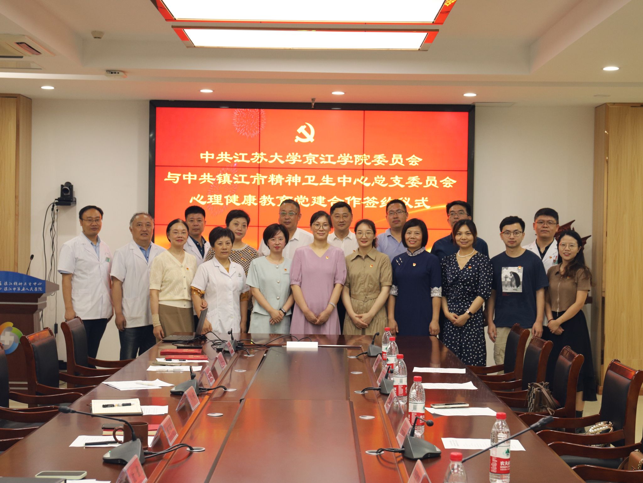 为贯彻落实教育部等十七部门联合印发的《全面加强和改进新时代学生心理健康工作专项行动计划(2023-2025)》要求,深入实施关爱青少年生命健康“润心”行动,探索医校共建校园心理健康新模式,6月29日,江苏大学京江学院与镇江市精神卫生中心心理健康教育医校党建合作签约仪式在精神卫生中心会议室举行。江苏大学京江学院党委书记尹志国,副书记、副院长吴立平及相关职能部门负责人和专职心理教师,镇江市精神卫生中心党总支书记曹卫东,副书记吴辉及相关科室主任参加了签约仪式。