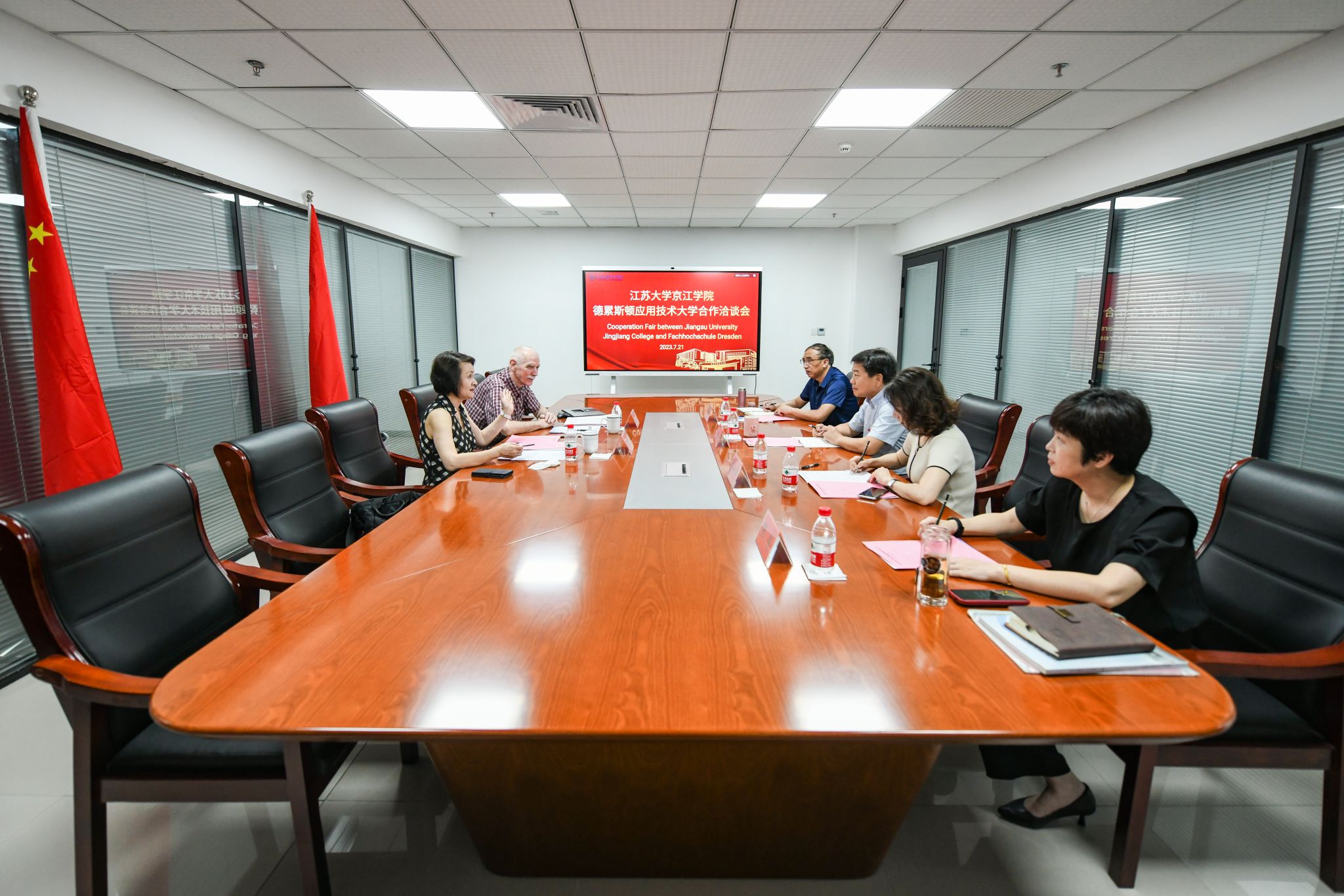 赵喜仓对德累斯顿应用技术大学校方代表一行表示热烈欢迎。他详细介绍了江苏大学京江学院的基本情况、专业优势、办学特色等。他表示,推进与德国德累斯顿应用科技大学签订战略合作协议及落实合作项目是2023年国际化工作的重点工作之一,希望双方在合作办学、专业共建、师生交流、课程建设等方面,能够开展立体化多层次交流与合作,打造合作办学特色品牌,开辟高水平应用型大学特色发展和高质量发展新途径、新赛道。