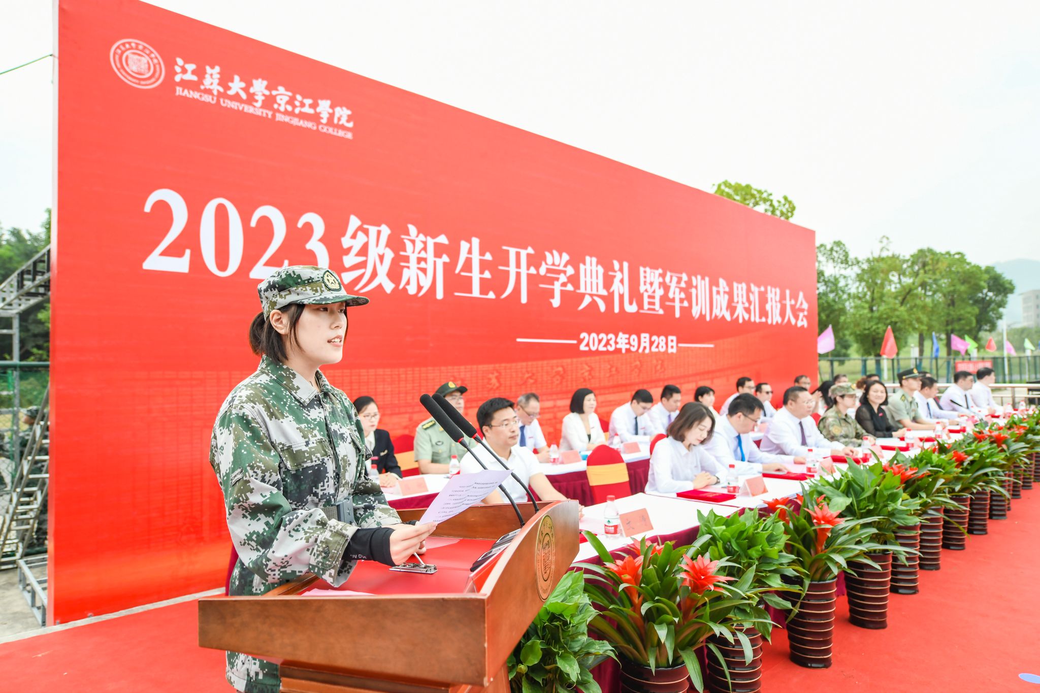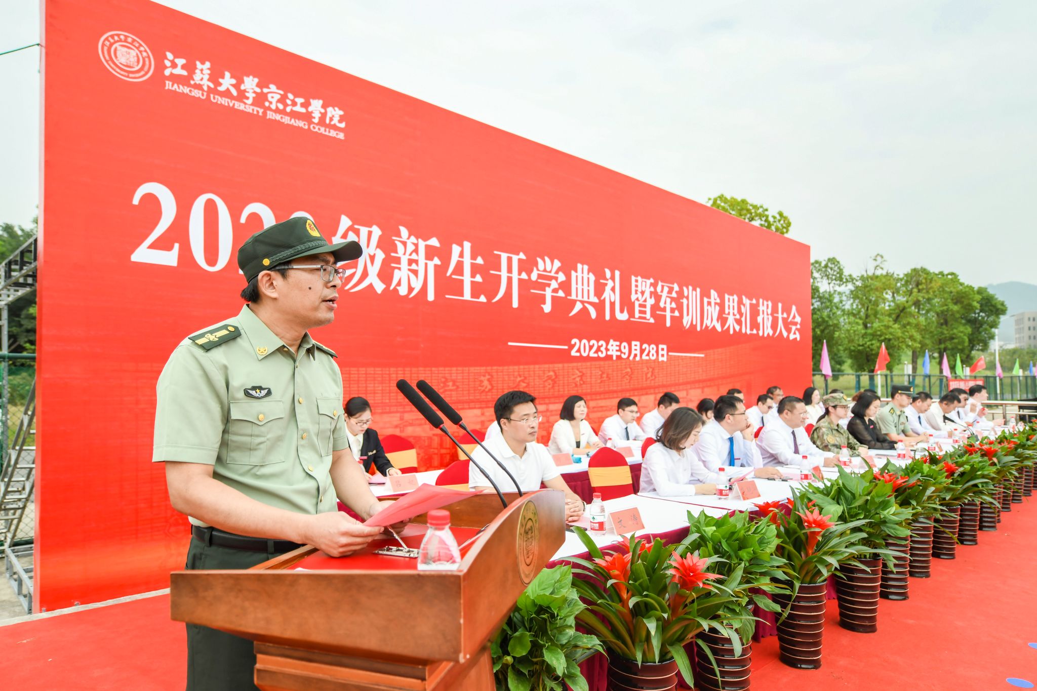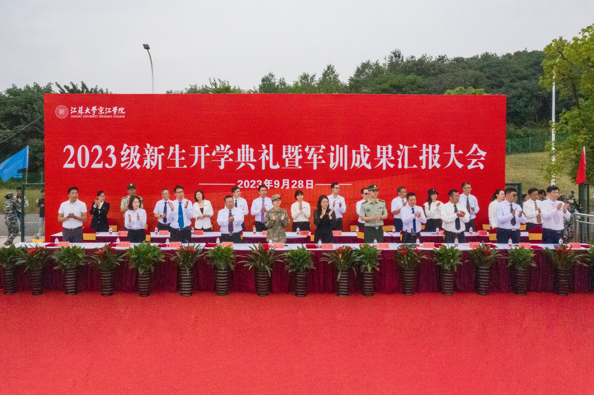 9月28日上午,江苏大学京江学院2023级新生开学典礼暨军训成果汇报会在京江操场举行。