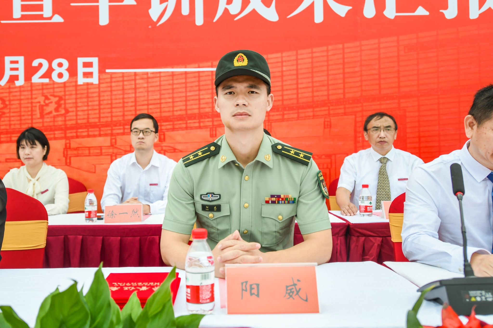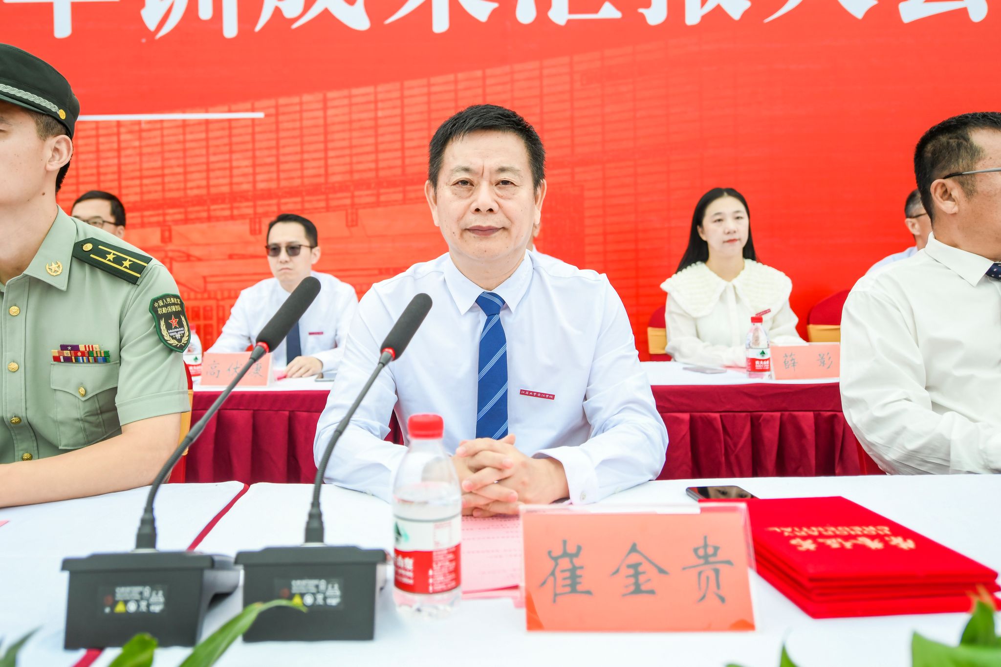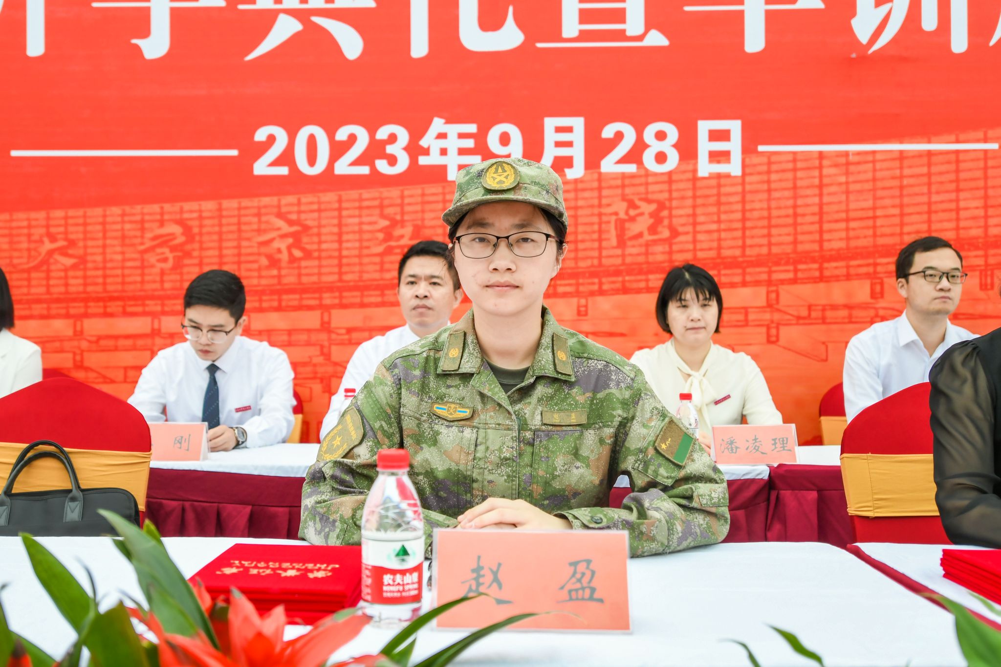 学院党委副书记、副院长吴立平宣读《关于表彰2023级学生军训工作先进个人的决定》,在主席台就座的领导和嘉宾为军训优秀个人颁奖。