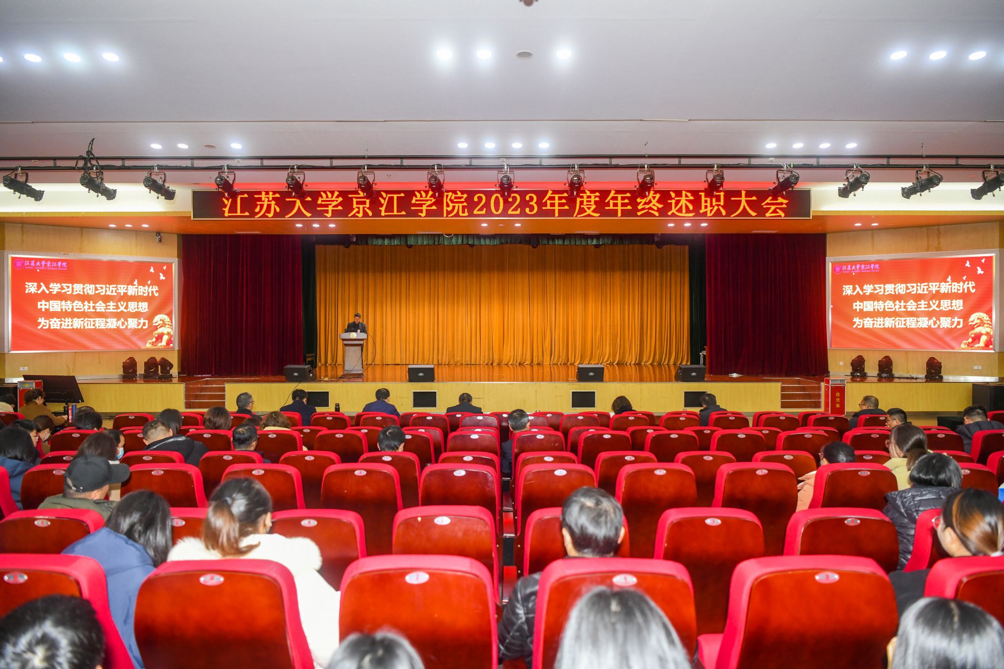 1月19日下午,京江学院在大学生活动中心多功能报告厅召开2023年度年终述职大会。京江学院领导班子成员与全体教职工参加了会议。会议由院党委书记崔金贵主持。