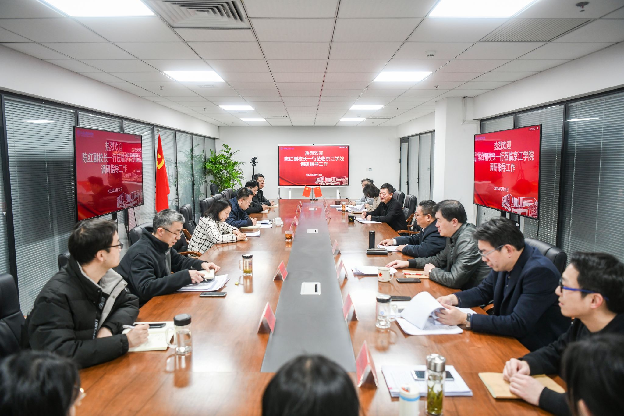 3月13日下午,副校长陈红一行赴京江学院调研,京江学院全体院领导、相关职能部门负责人参加座谈会,座谈会由京江学院党委书记崔金贵主持。