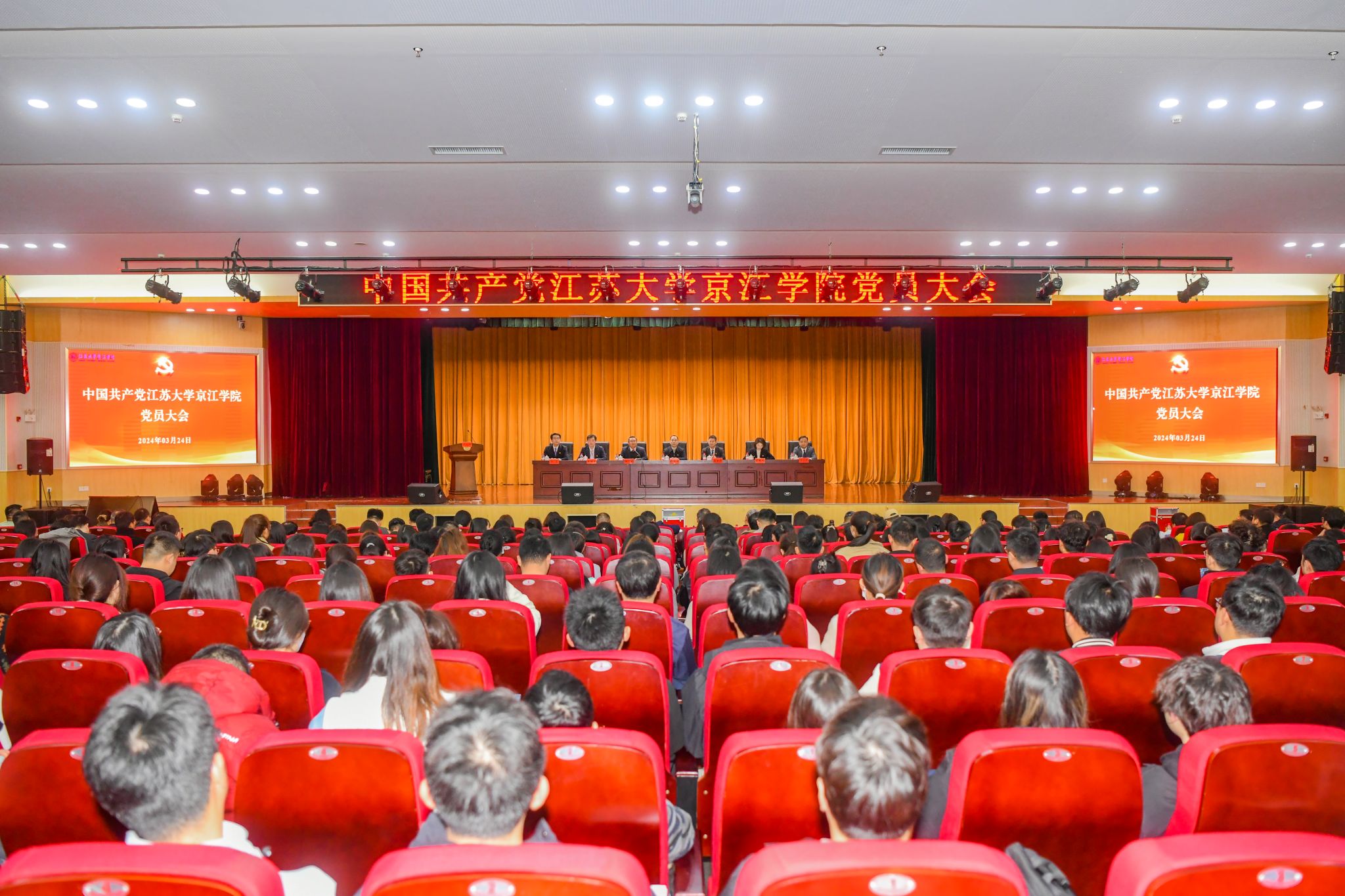 3月24日上午,中共江苏大学京江学院第七届委员会和中共江苏大学京江学院第二届纪律检查委员会换届选举大会在京江学院大学生活动中心多功能报告厅举行。江苏大学党委常委、组织部部长杨敬江莅临大会指导,京江学院全体党员参加大会。大会由院长杜道林主持。
