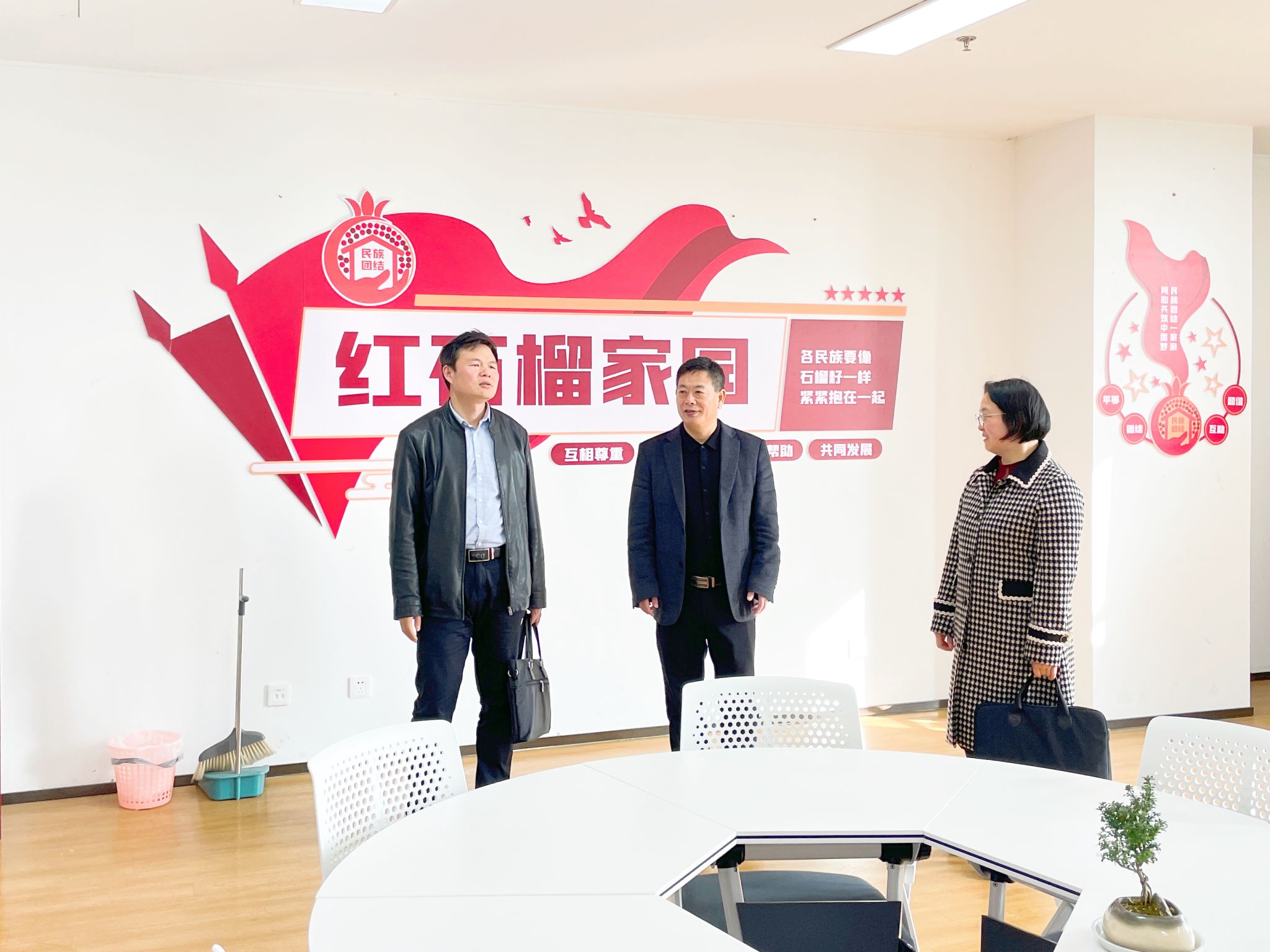 3月28日,江苏大学党委统战部常务副部长金玉成一行来京江学院调研指导“红石榴家园”建设,就京江学院红石榴学院、党员(红石榴家园)服务驿站建设进行座谈交流。京江学院党委书记崔金贵、院长杜道林以及相关职能部门负责人陪同实地参观。