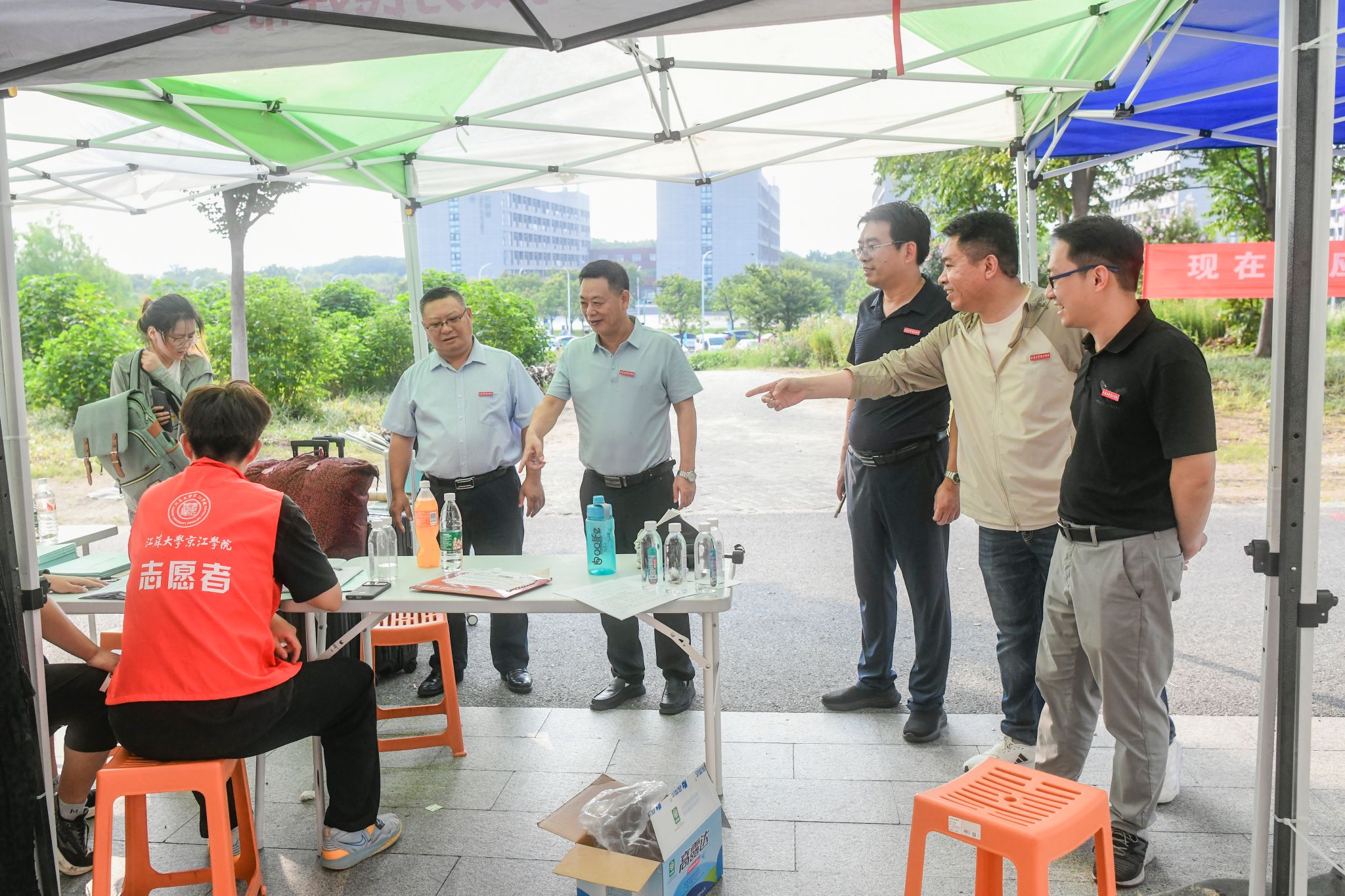 院领导一行了解了老生返校情况和新生报到流程,并亲切慰问了现场工作人员。崔金贵强调,要进一步做好安排部署、服务保障,打造暖心的迎新氛围,筑牢校园安全防线,确保新生报到和老生返校工作有序开展。同时,对报到服务点的工作人员和学生志愿者给予肯定,对广大工作人员的辛勤付出表示感谢,叮嘱工作人员要为新生做好服务,帮助新生更好地融入京江大家庭。