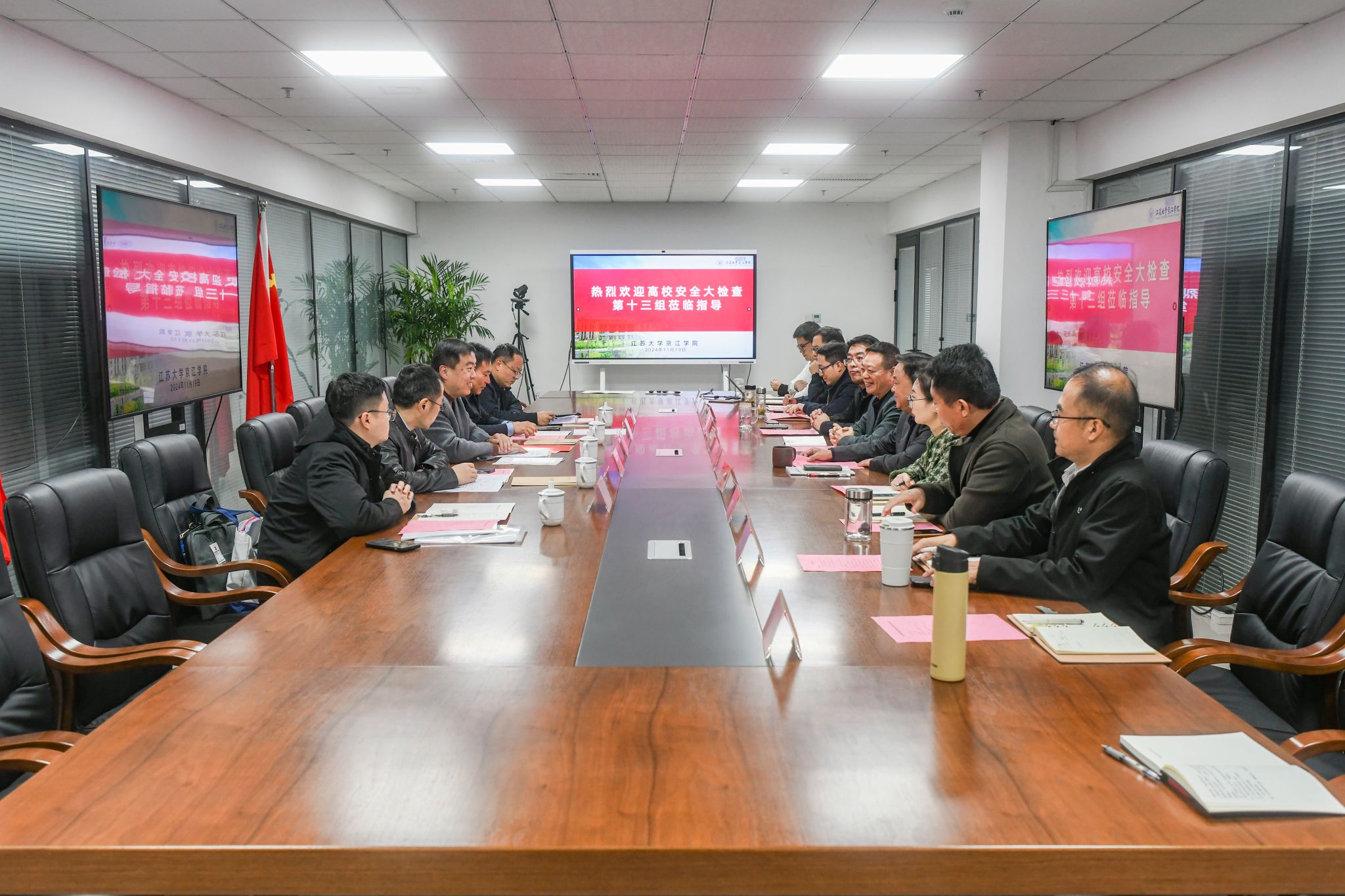 11月19日,由中国矿业大学党委保卫部(处)部(处)长宋冰带队,省高校安全检查第十三工作组一行来京江学院开展安全检查。京江学院党委书记崔金贵,副院长李文新,党委副书记、纪委书记蒋豪及相关职能部门负责人陪同检查,汇报会由李文新主持。