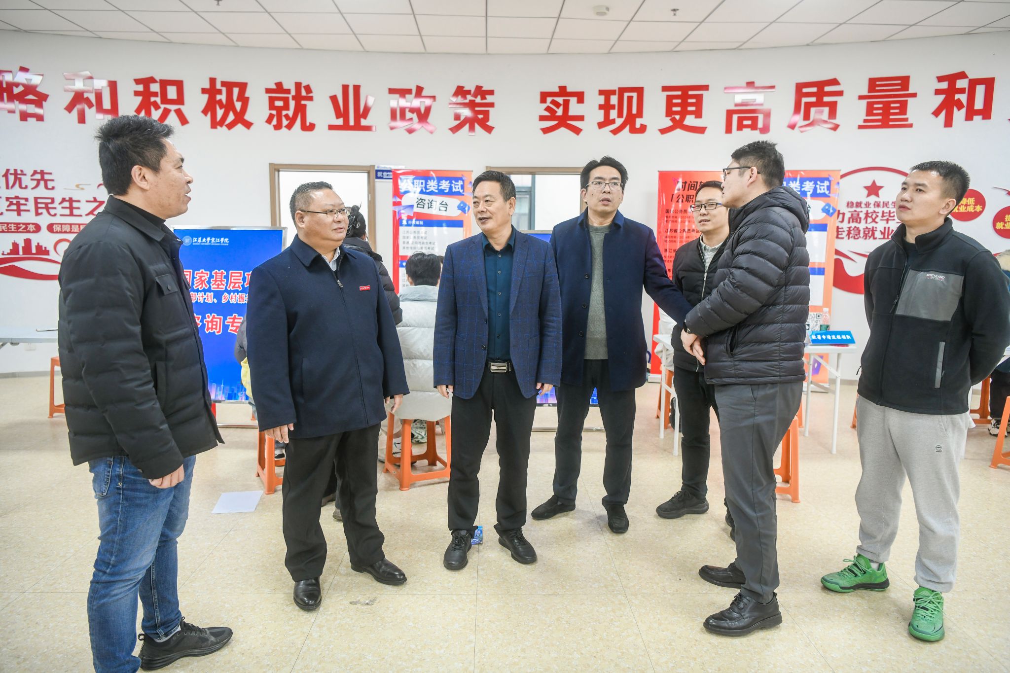 12月4日,京江学院在图文信息中心“就业新天地”举办“服务新质生产力 校地强链促就业”暨2025届毕业生秋季综合性招聘会。京江学院党委书记崔金贵,院长杜道林,党委副书记、纪委书记蒋豪,学生工作部相关负责人,各二级学院党总支书记,毕业班辅导员及2000余名2025届毕业生参加了招聘会。