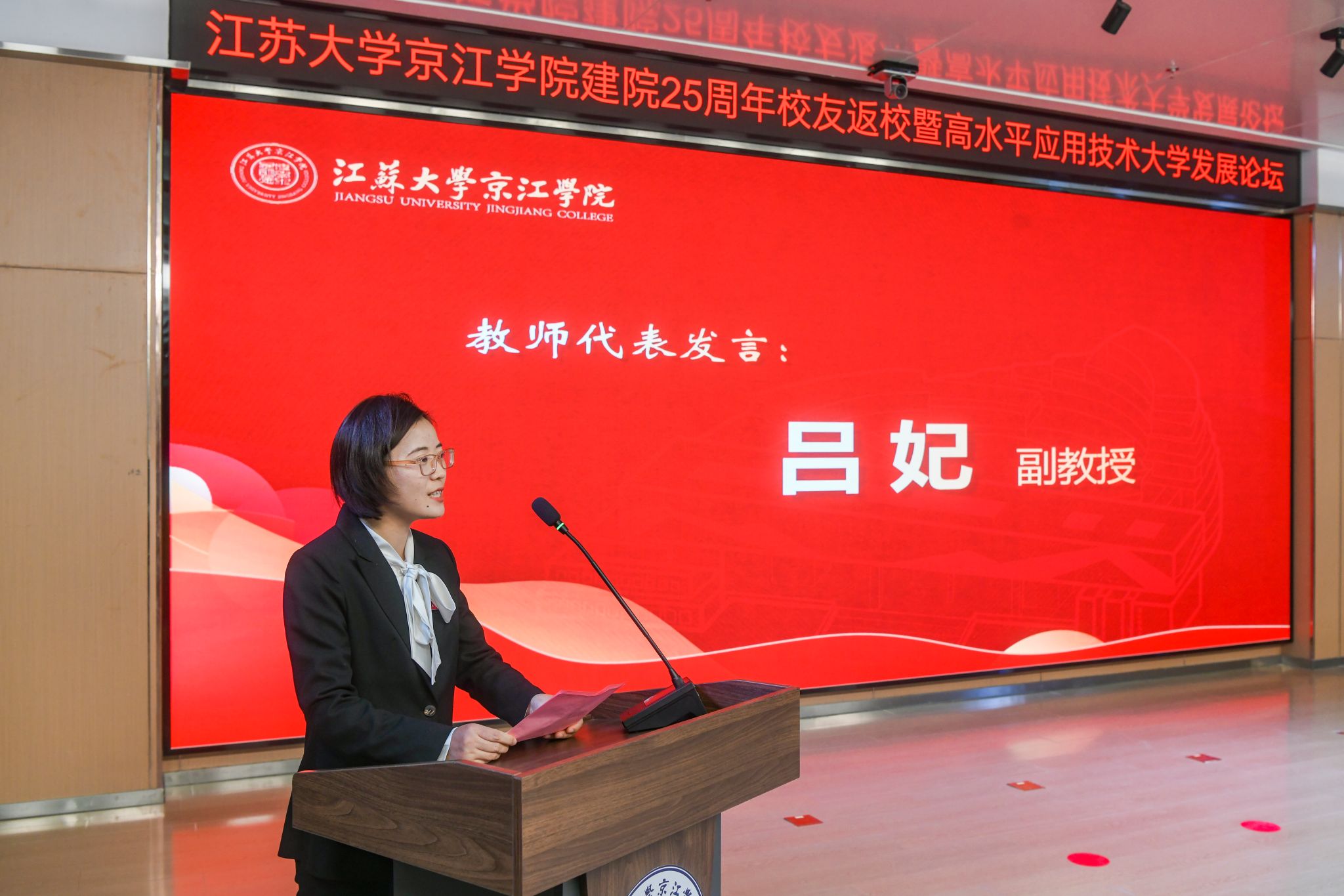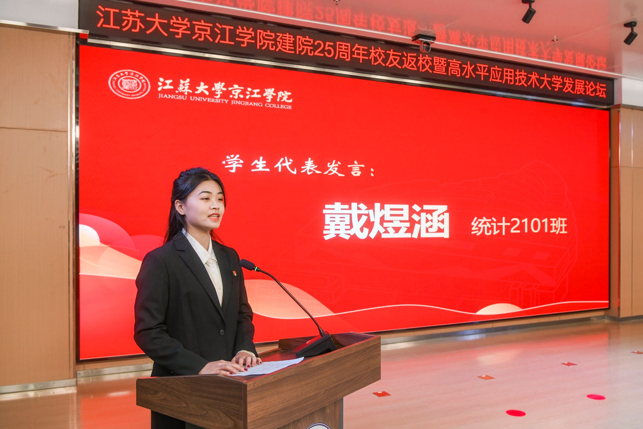 12月21日,江苏大学京江学院在学术交流中心报告厅隆重举行建院25周年校友返校暨高水平应用技术大学发展论坛。镇江市政协副主席、江苏大学副校长陈红,镇江市发展和改革委员会副主任朱华,南京师范大学中北学院院长戴传超,江苏大学校友会与对外联络办公室主任李国昊,企业代表,江苏大学京江学院全体院领导、校友代表、教师代表、学生代表出席大会。