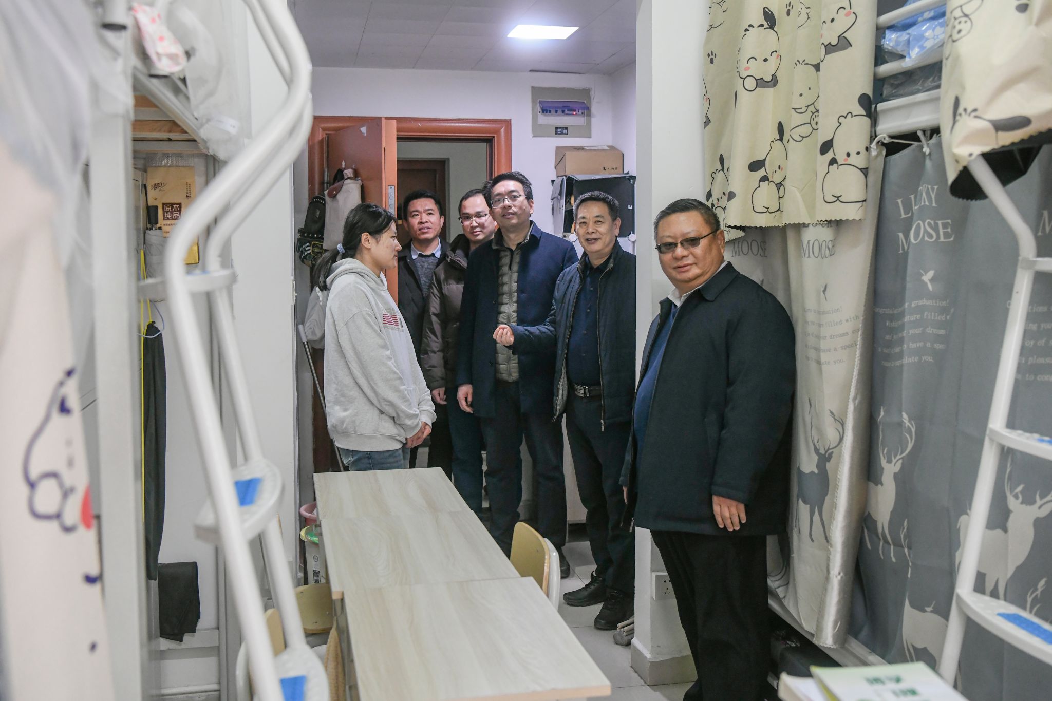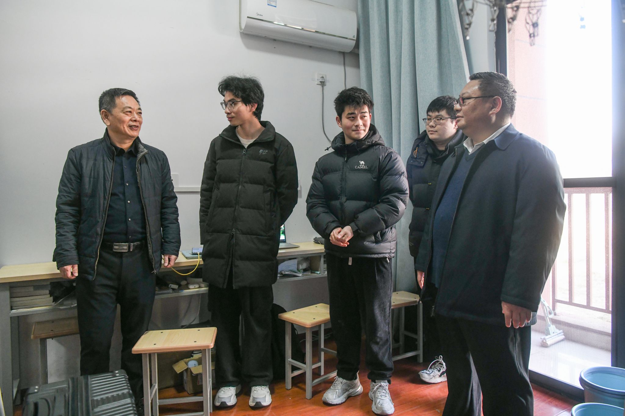 2月15日下午,京江学院党委书记崔金贵,院长杜道林,党委副书记、纪委书记蒋豪一行走访看望返校学生。相关职能部门负责人陪同走访。