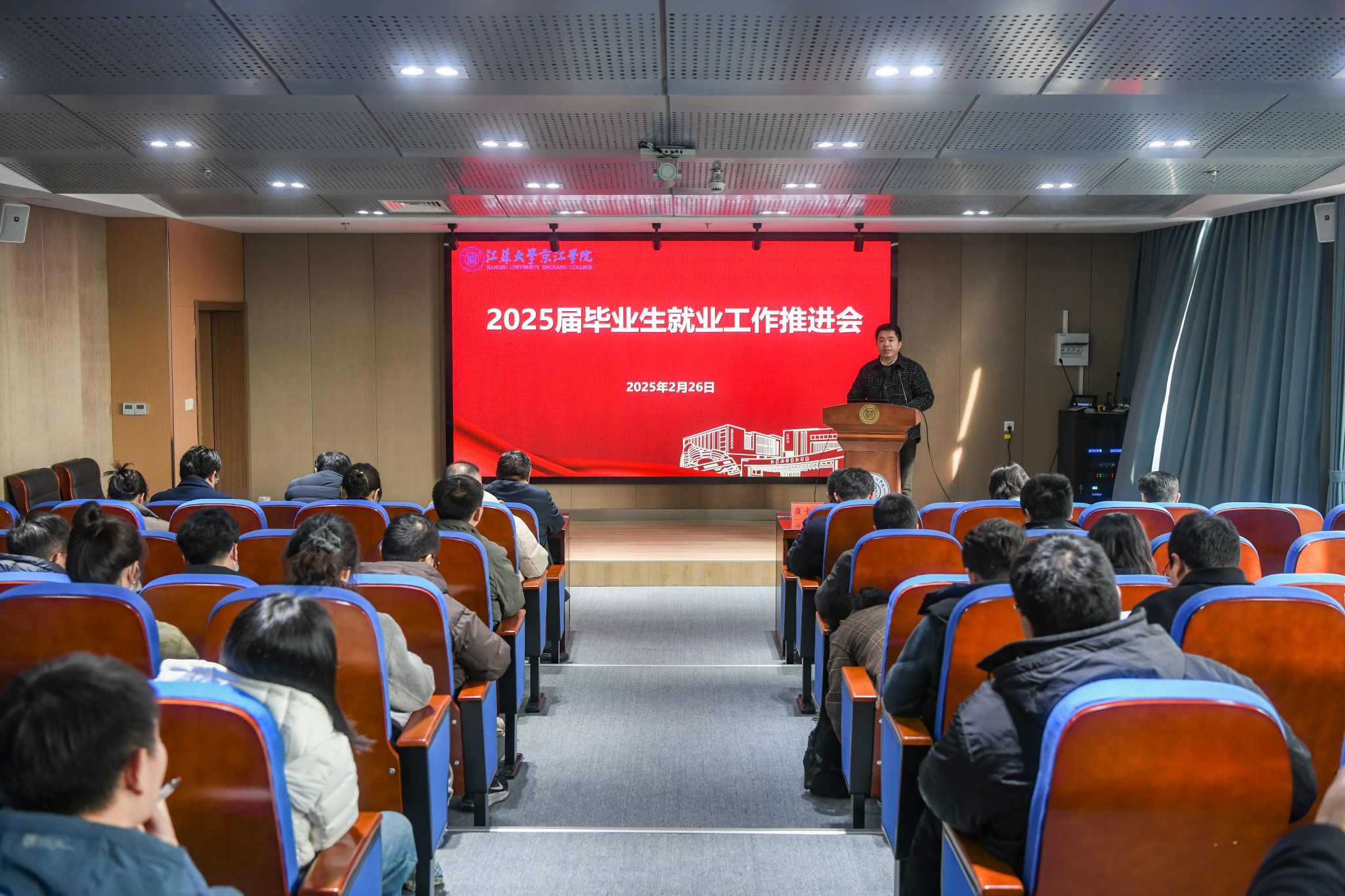 京江学院党委副书记、纪委书记蒋豪全面部署了2025届毕业生就业工作。他要求,一是要提高站位,准确把握就业工作面临的形势,构建多维度稳就业协同机制;二是要狠抓落实,多措并举拓宽就业渠道,为毕业生争取更大的就业支持;三是要精准施策,不断提高就业工作成效,做到逐级压实责任、强化数据监测、健全就业反馈机制。