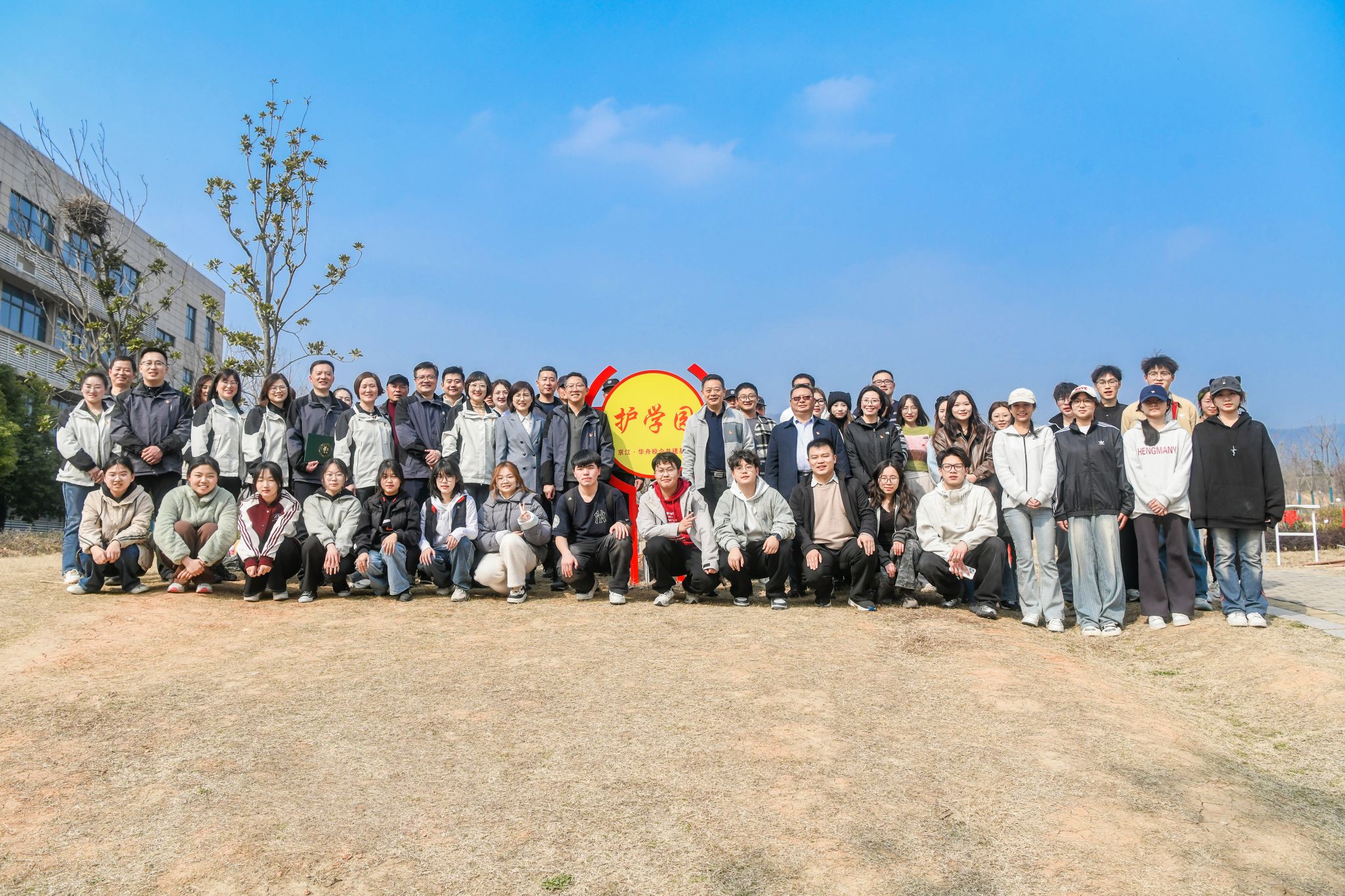 春回大地,万物复苏,在第47个植树节来临之际,江苏大学京江学院机关直属第二党支部与华舟物业管理有限公司举办“党旗领航植新绿,校企共建育新人”党建共建植树节活动。