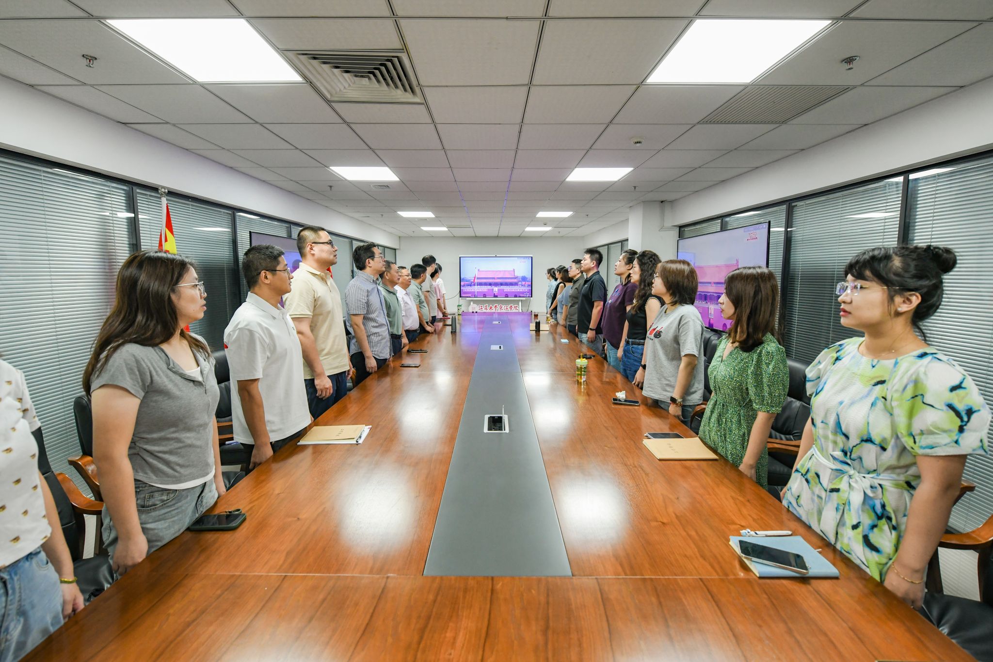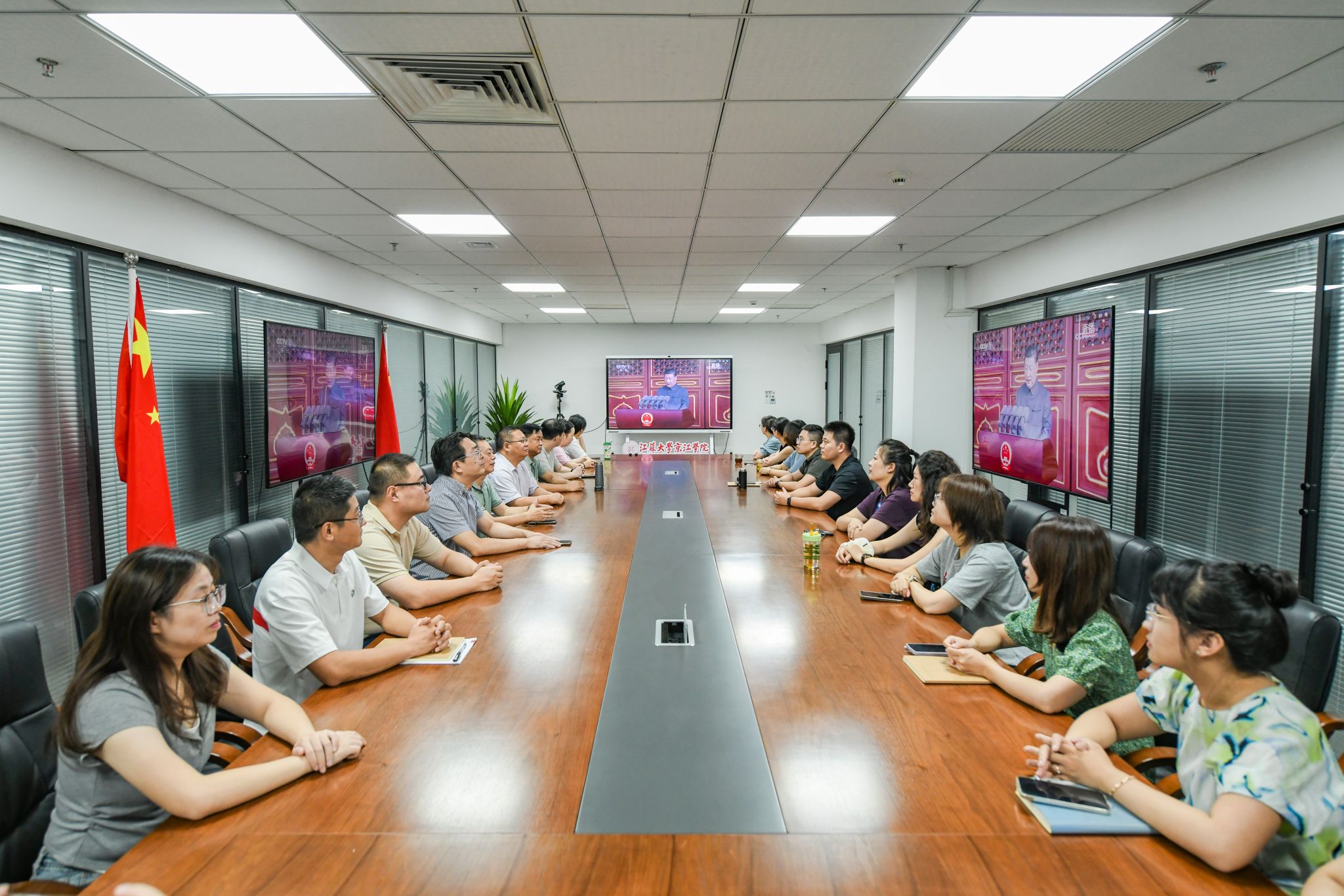 学院分别在行政楼和教学楼设置了两个主会场,方便师生共同见证这一庄严时刻。距离大会开始还有一段时间,两个会场已座无虚席,师生满怀期待地等待大会直播开启。