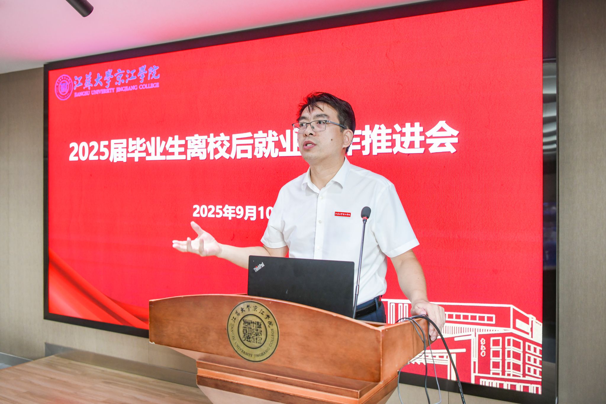 会上,就业指导中心主任刘江首先通报了当前2025届离校毕业生的总体就业进展与态势。他详细汇报了截至目前的毕业生去向落实率、就业结构特点以及存在的突出问题,并对下一阶段未就业毕业生群体的精准帮扶、岗位拓展、指导服务等重点工作计划进行了说明。他表示,将持续提供“不断线”的就业服务。
