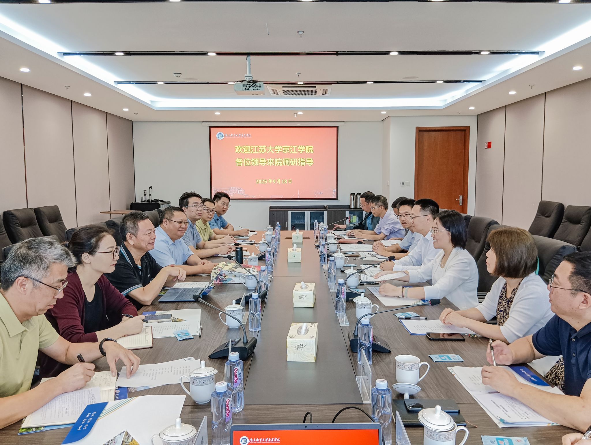 9月18日,江苏大学京江学院党委书记崔金贵,院长杜道林,党委副书记、纪委书记蒋豪一行赴南京邮电大学通达学院开展“十五五”规划编制工作调研。南京邮电大学通达学院党委书记赵允玉、院长沈建华、常务副院长杨立军,纪委书记宋健康及相关职能部门负责人热情接待了京江学院一行,并进行了座谈交流。会议由赵允玉主持。