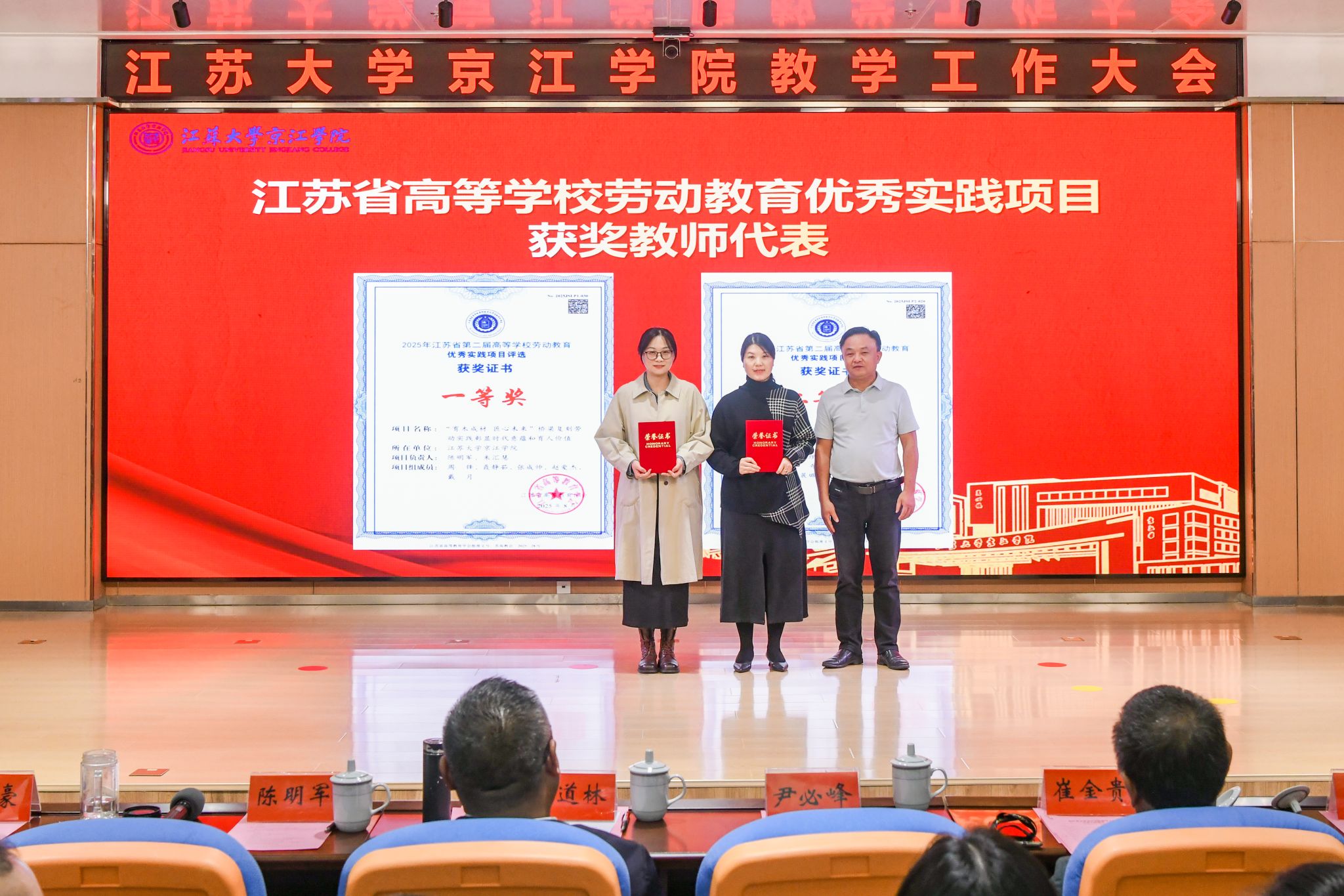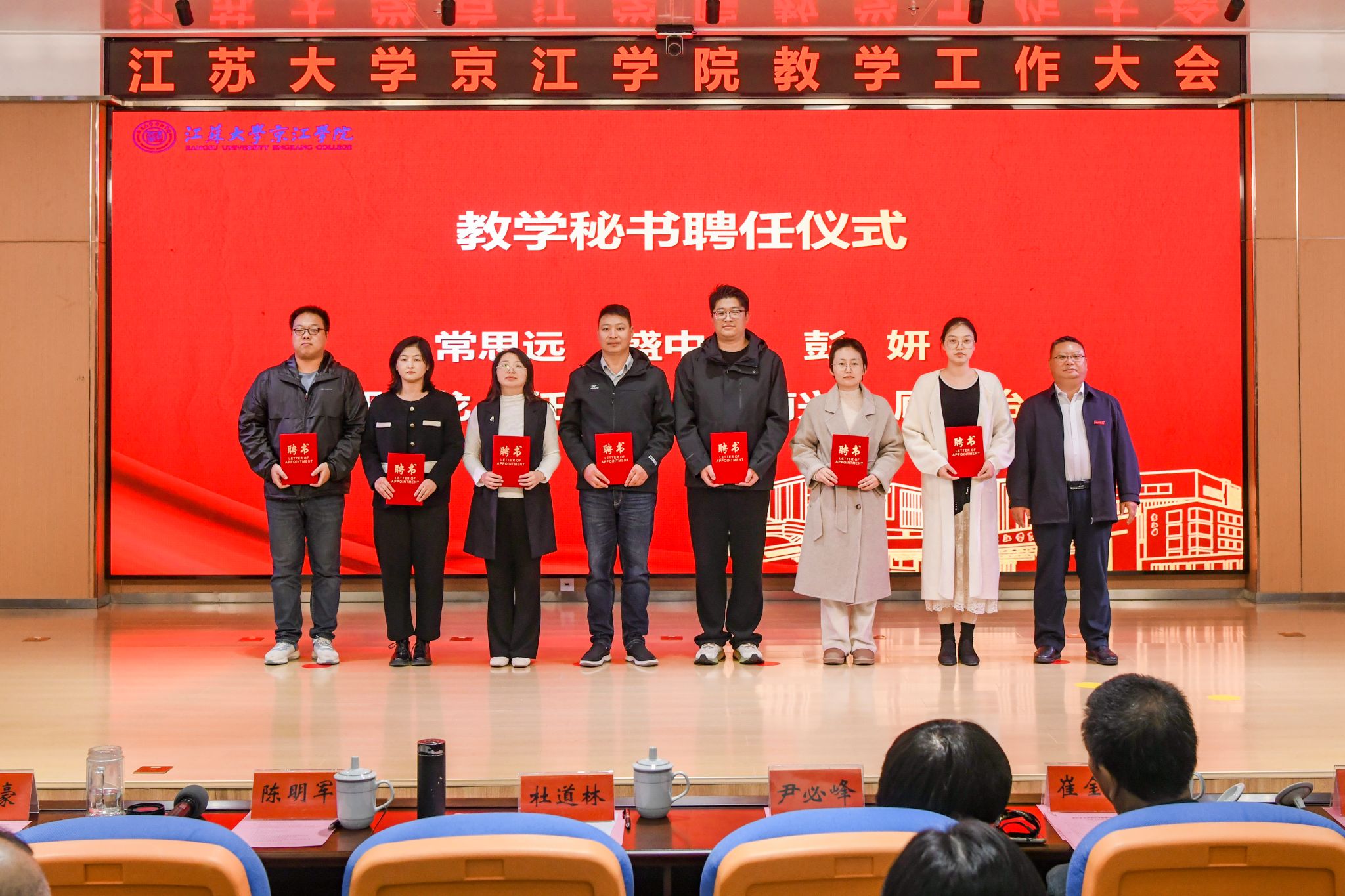 为贯彻党的二十届四中全会和全国教育大会精神,进一步落实立德树人根本任务,科学制定“十五五”教学工作规划,有效提高京江学院教育教学水平和本科人才培养质量,10月29日,京江学院在学术交流中心第四报告厅隆重召开第一届教学工作大会。江苏大学教务处处长尹必峰、京江学院全体院领导出席会议,京江学院教学督导、全院教职工参加大会。大会由副院长陈明军主持。