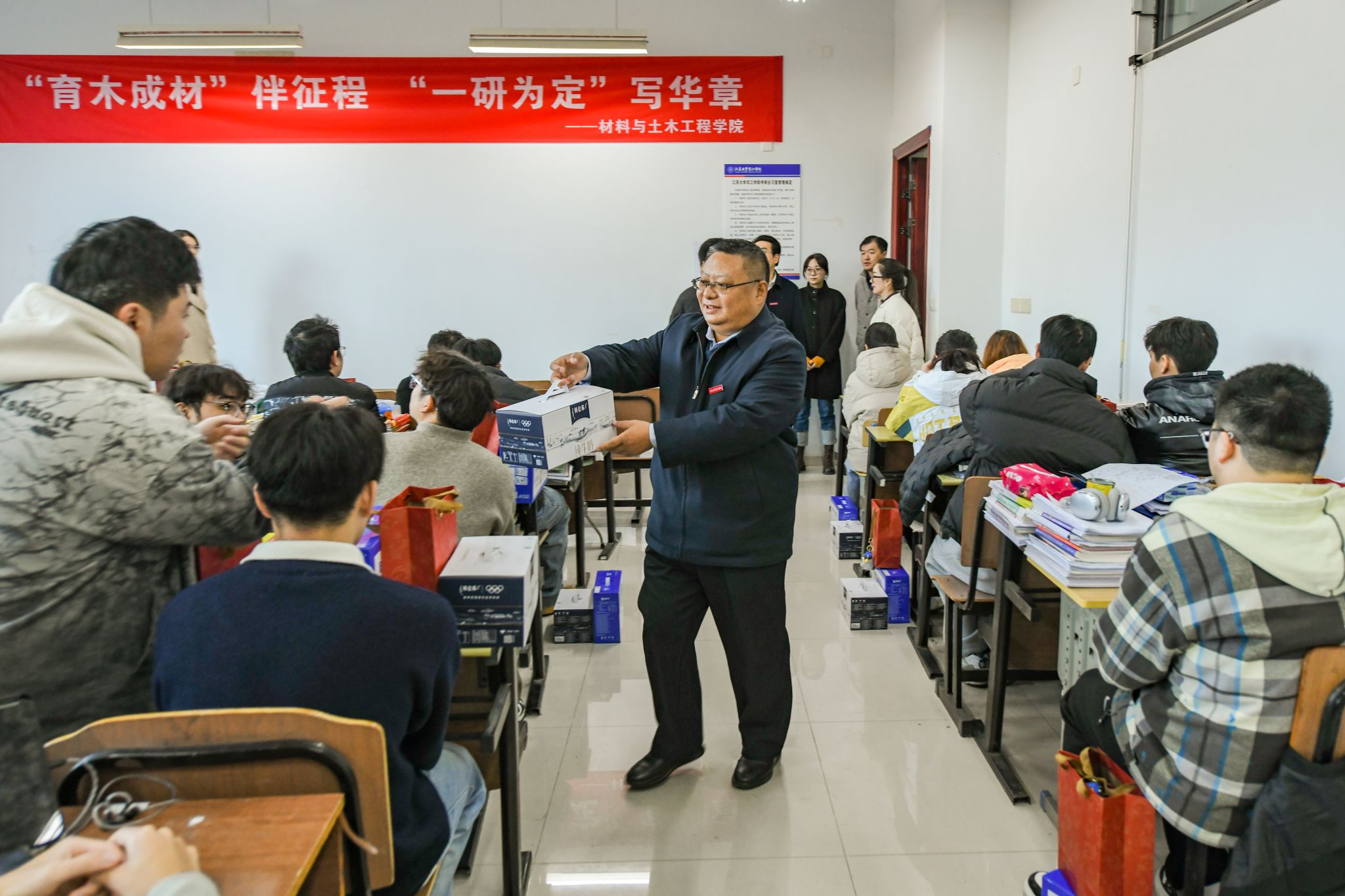 为了鼓舞京江学院考研学生的士气,激励学生坚定考研信心,12月4日上午,京江学院党委书记崔金贵,院长杜道林,副院长范艳华、陈明军,党委副书记、纪委书记蒋豪一行前往考研自习室为考研学生送上慰问与祝福。相关职能部门、二级学院负责人及辅导员陪同慰问。