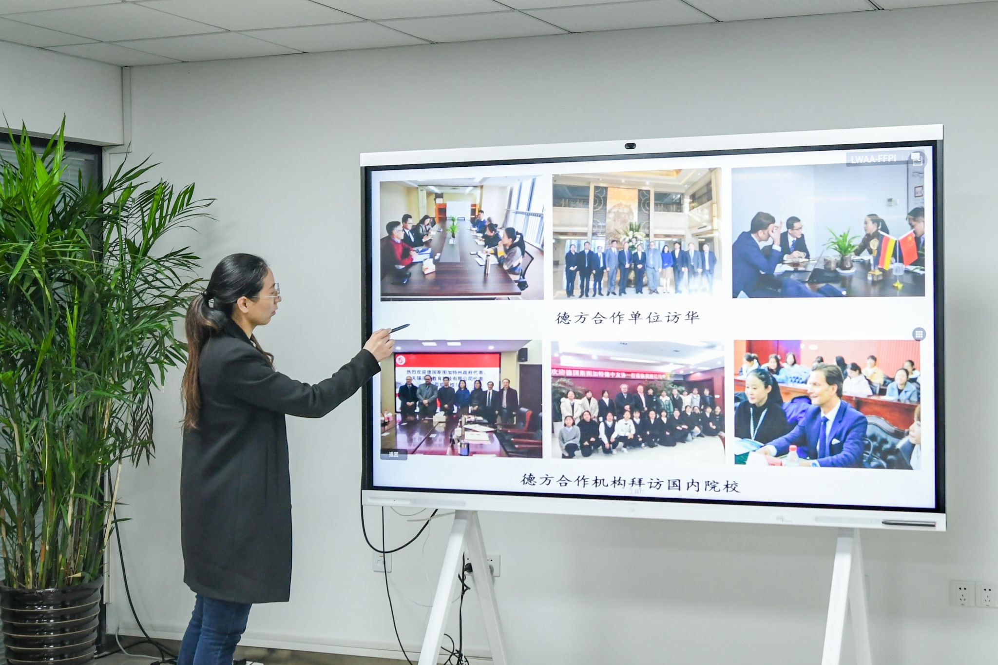 德国德累斯顿应用科技大学校方代表傅文轶教授介绍了德国大学的基本情况、办学特色以及德国近况。德国德累斯顿应用技术大学位于萨克森州德累斯顿市中心,设有社会科学学院、工商管理学院、设计学院等学科院系,与河北大学、中国计量大学、上海第二工业大学等国内高校开展了多个校际联合培养、学分交流、教师培训以及进修项目,是一所强在教学、注重实践、聚焦科研的大学。