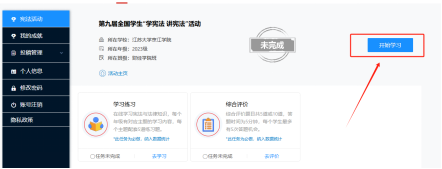 ①进入个人页面,点击开始学习,选择对应板块,进入学习页面。
