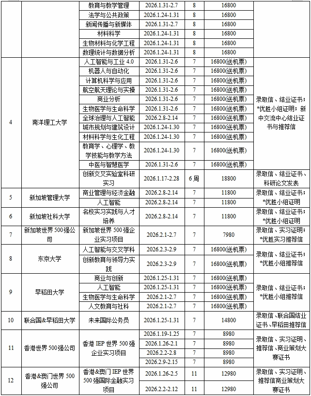 报名截至时间:日本项目12月15日截止;其它项目12月31日截止;
