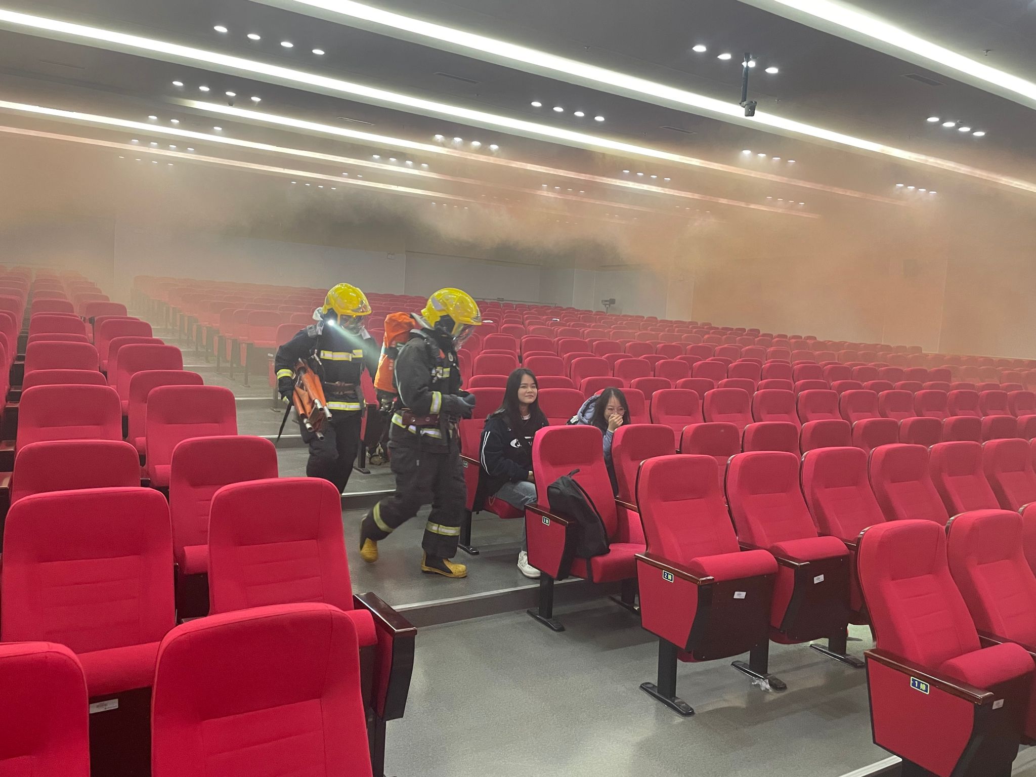 警报声响后,同学们按照指定路线,弯着腰,用湿毛巾捂住口鼻,迅速有序地从宿舍跑出,按规定的路线快速撤离到篮球场的指定地点。整个演练过程安全、迅速、有序,达到了演习的目的和预期效果。