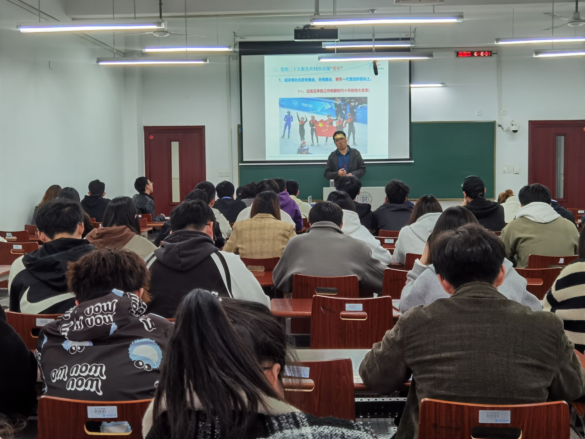 为深入学习贯彻党的二十大精神,进一步提升师生党员党性修养,11月23日,党委副书记、副院长吴立平在京江楼B205为电气信息工程学院教管学联合第二党支部、机械与动力工程学院教管学联合第一党支部全体党员和“红石榴班”学生讲授“做新时代有为青年”主题党课。