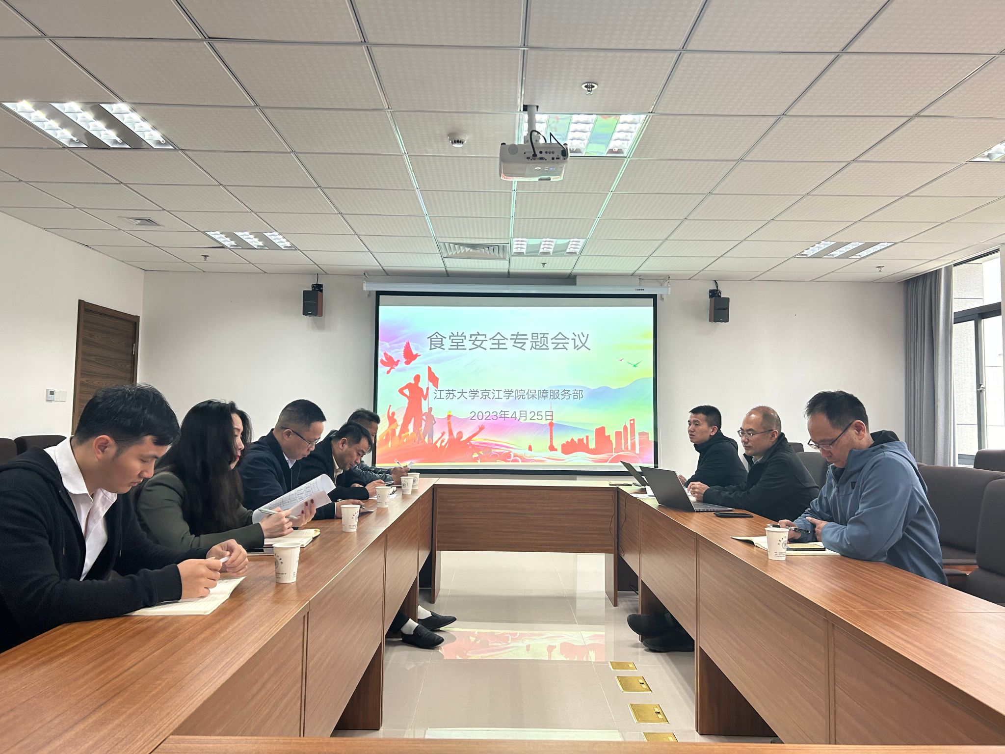 会议上,保障服务部部长卞力传达了江苏省关于落实《高等学校学生食堂工作的指导意见》的会议精神,通报了近期食堂安全生产检查结果和师生投诉反馈意见。最后,参会人员就提升食堂餐饮服务质量和食堂安全生产等方面展开交流讨论。食堂相关负责人表示将严格落实食品安全相关政策文件,增强从业人员安全意识,提升食堂管理水平,不断推进智慧食堂建设。(撰稿单位:保障服务部)