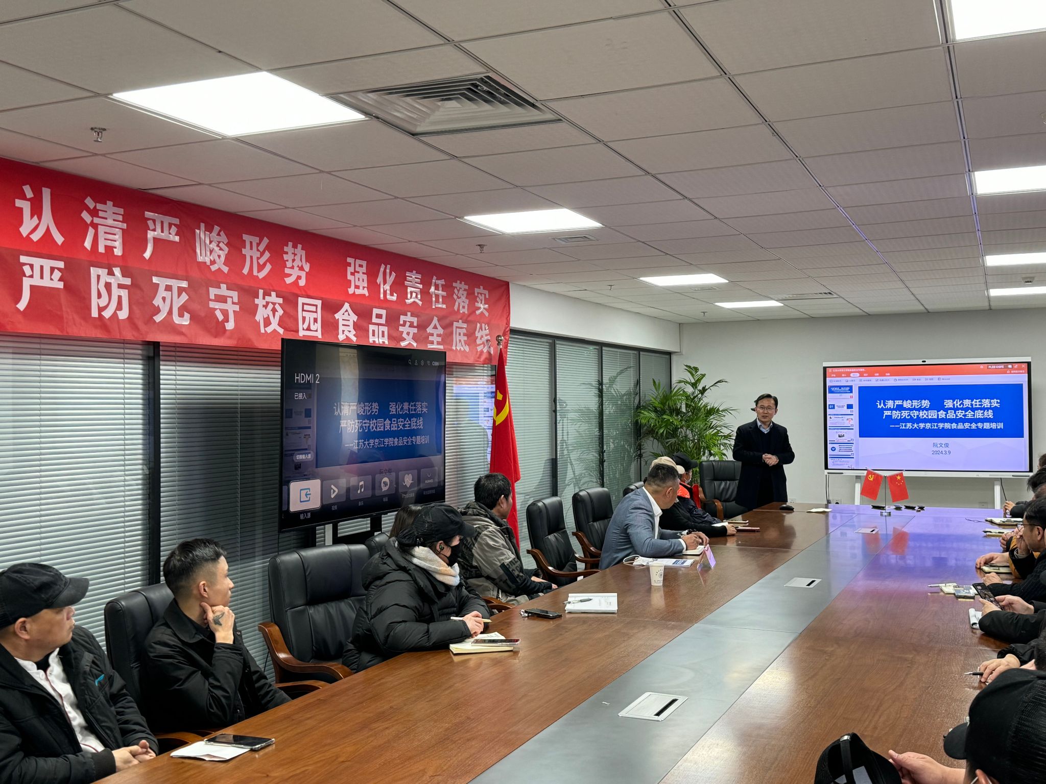 为了强化安全意识,提升食堂管理水平。保障服务部特邀请镇江市市场监管局科长阮文俊对食堂管理人员进行食品安全专题培训。阮文俊要求食堂管理人员认清严峻形势,强化责任落实,严防死守校园食品安全底线,并通过食品安全检查的真实案例,明确了食品安全管理的重点。