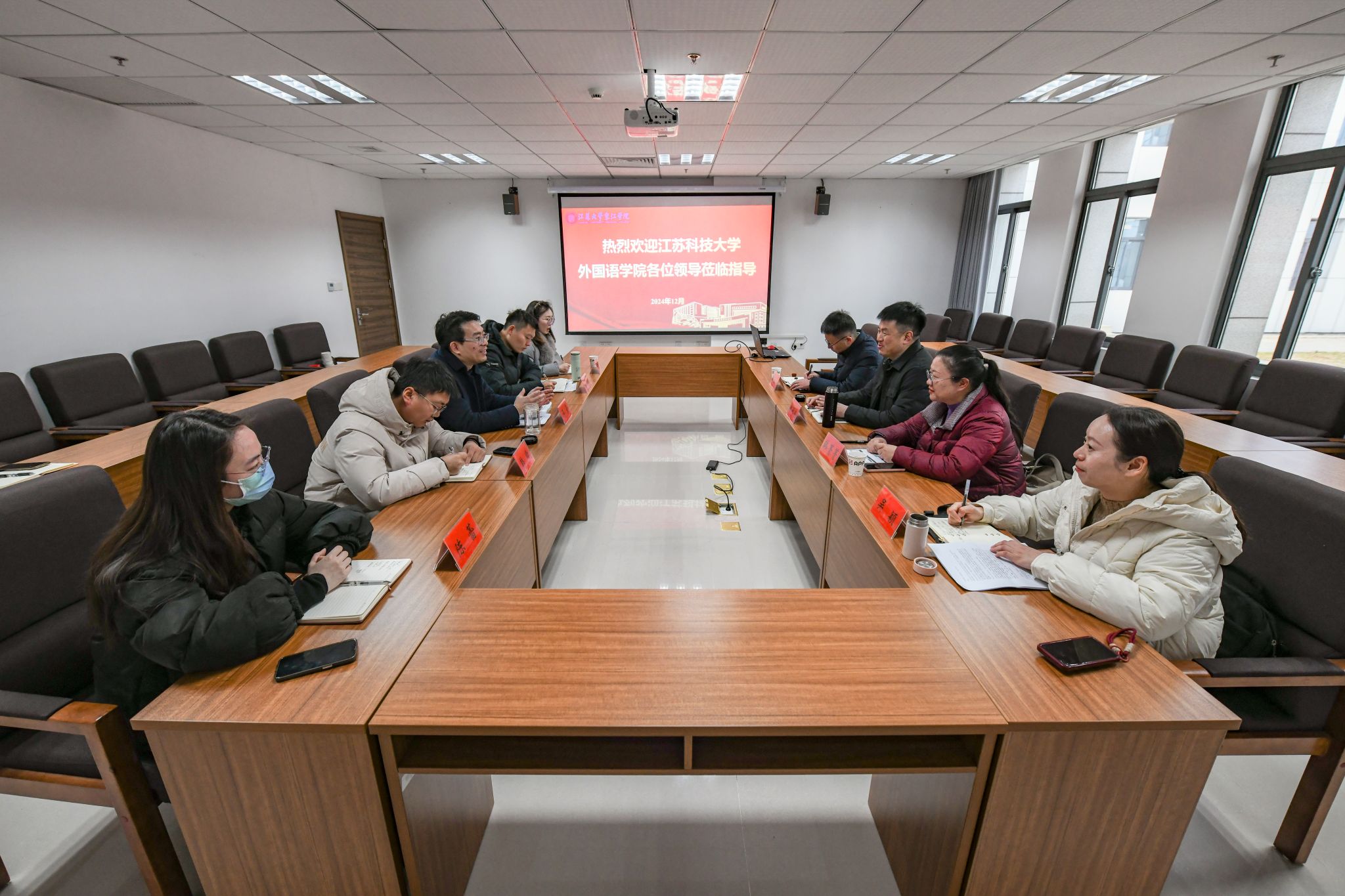 交流会上,蒋豪对江苏科技大学外国语学院领导的到来表示热烈欢迎,希望双方学院能够相互学习、共同提高。